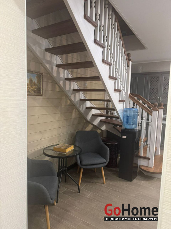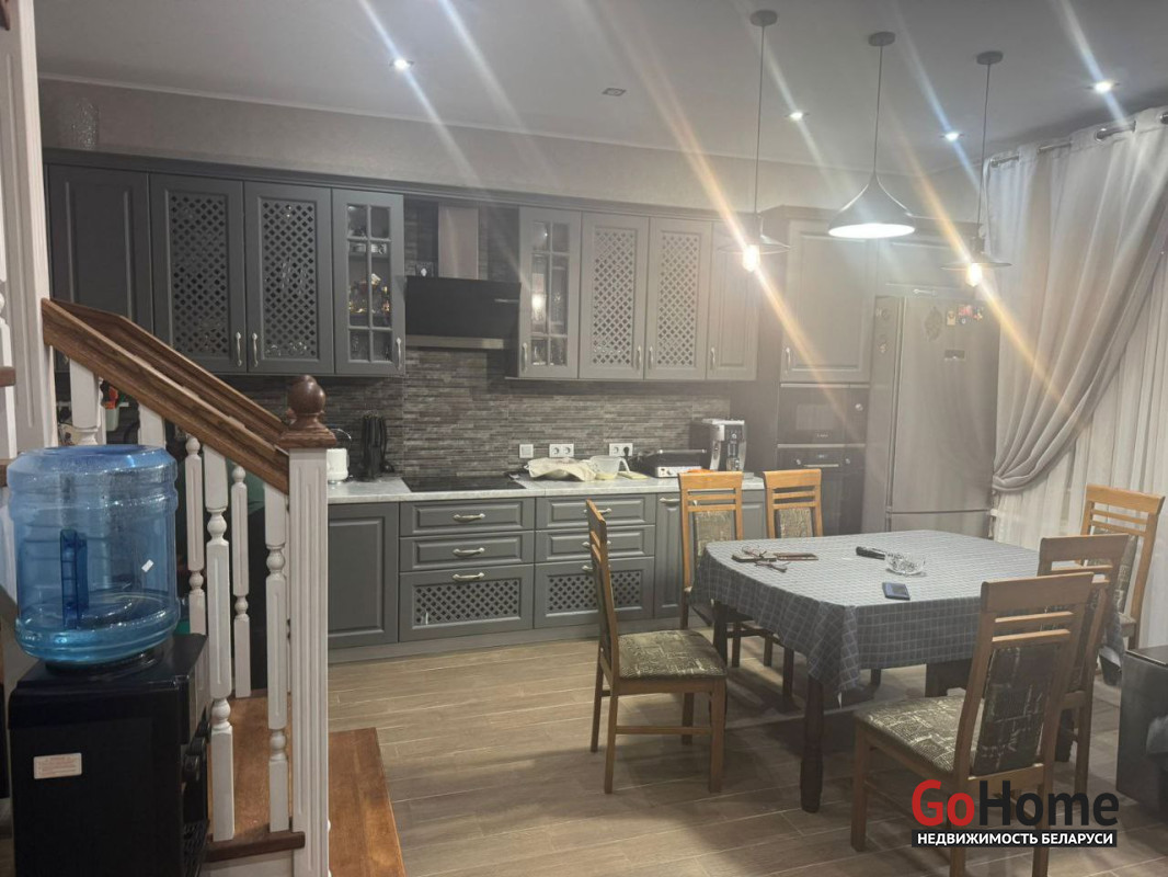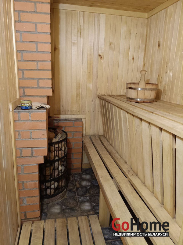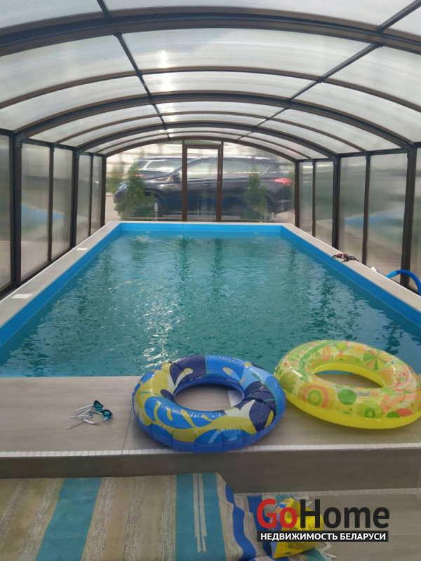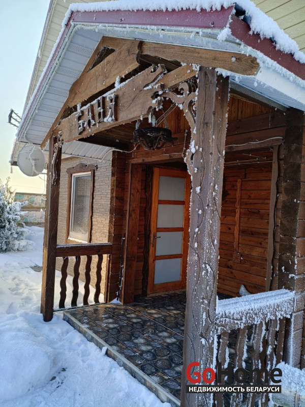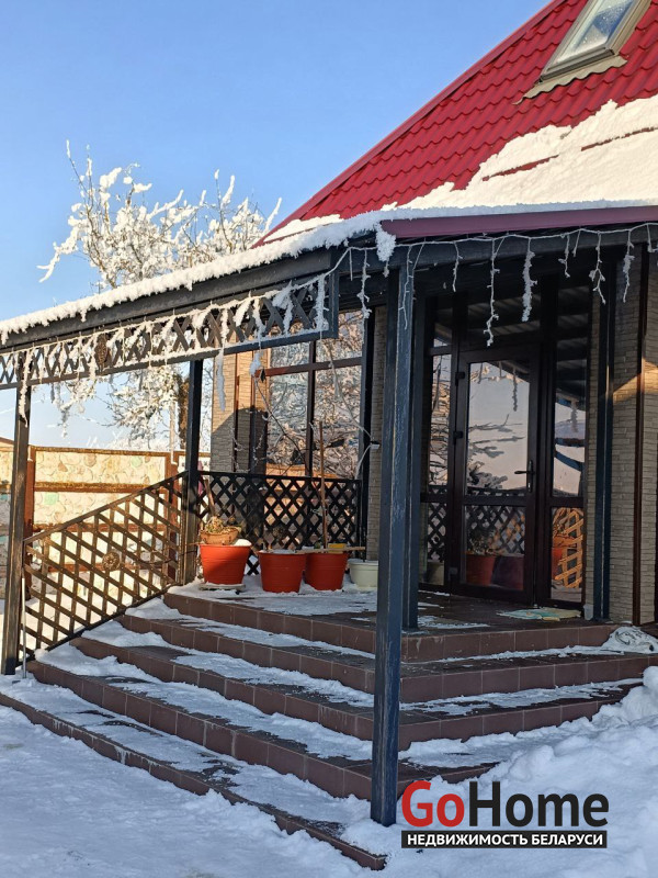 Благоустроенный коттедж для круглогодичного проживания Благоустроенный коттедж для круглогодичного проживания в 25 км от Минска, в оазисе природы и спокойствия. Расположен в газифицированной деревне Гореновка, Брестское направление. Дом 2021 года постройки, общая площадь -140,9 кв.м.: - 2 (два) этажа: на 1 этаже – кухня-гостиная 27 кв.м, две жилые комнаты(10.1 кв.м. и 12.8 кв.м.), веранда застекленная по всему периметру 14.8 кв.м. с выходом на улицу, санузел 6.2 кв.м., техкомната для управления домовыми коммуникациями (топочная). Напольное покрытие на 1 этаже –плитка с подогревом; на 2 этаже (мансардный этаж) - обустроенная бильярдная 26.7 кв.м. и комната отдыха 24.5 кв.м.; - дизайнерский ремонт, высококачественные материалы, итальянская плитка, камень, итальянские обои, качественная мебель и бытовая техника; - утеплен и оштукатурен снаружи и внутри; - возведен из керамзитобетонного блока, с наружным утеплением пеноплексом 100 мм + фасадная сетка, затем декоративная штукатурка; - разведена вся электрика согласно проекту; - вода в доме из своей скважины и центральная (по выбору); - газовое отопление; - асфальтированная дорога к дому; -въезд на участок оборудован откатными воротами с дистанционным управлением; -по периметру дом огорожен бетонным забором с теснением «под камень». Благоустроенный участок - 0,1622 га: - правильной ровной формы; - с ландшафтным дизайном; - покрытие дорожек, парковки из крупноразмерной тротуарной плитки; - подсветка участка; - на участке различные плодовоягодные насаждения ( яблони, груши, черешня, кизил и др.), а также цветовые декоративные островки; - декоративный деревянный мостик с подсветкой над маленьким прудиком; - при въезде на участок справа и слева высажены туи; - разведены трубы по участку для удобного полива. На участке, также, расположены: - 2(двух) этажная БАНЯ с внутренним отоплением, санузлом, душевой и гостевой комнатой с лоджией на втором этаже; - крытый большой бассейн с подогревом воды и подсветкой - большая летняя кухня с барбекю, оснащена роль-шторами, позволяющими в летний период использовать её как беседку для отдыха; - гостевой домик с санузлом; - большая теплица; - домик для технического инвентаря. Хорошие подъездные пути к дому, асфальтированная дорога, в пешей доступности Белоцапельный пруд. Дом построен с любовью и знанием дела, использованы качественные материалы и учтены все современные технологии! Это место — настоящая мечта для тех, кто ценит природу, свежий воздух, тишину и комфорт. Вокруг царит гармония и спокойствие.
