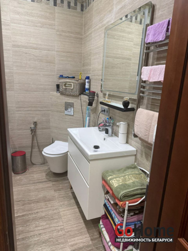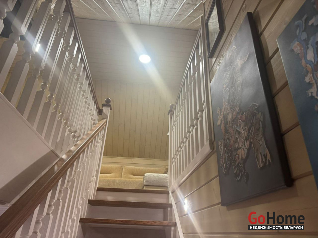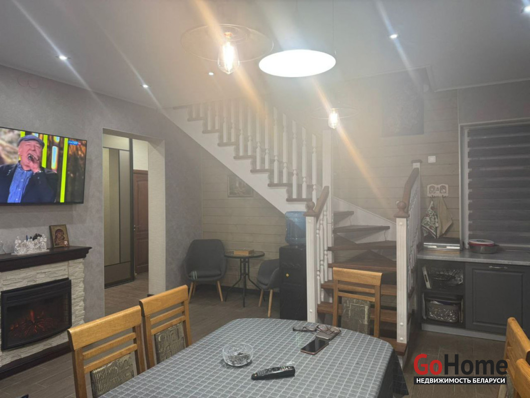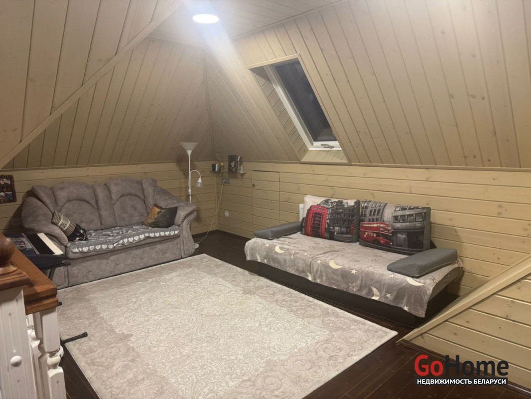 Благоустроенный коттедж для круглогодичного проживания Благоустроенный коттедж для круглогодичного проживания в 25 км от Минска, в оазисе природы и спокойствия. Расположен в газифицированной деревне Гореновка, Брестское направление. Дом 2021 года постройки, общая площадь -140,9 кв.м.: - 2 (два) этажа: на 1 этаже – кухня-гостиная 27 кв.м, две жилые комнаты(10.1 кв.м. и 12.8 кв.м.), веранда застекленная по всему периметру 14.8 кв.м. с выходом на улицу, санузел 6.2 кв.м., техкомната для управления домовыми коммуникациями (топочная). Напольное покрытие на 1 этаже –плитка с подогревом; на 2 этаже (мансардный этаж) - обустроенная бильярдная 26.7 кв.м. и комната отдыха 24.5 кв.м.; - дизайнерский ремонт, высококачественные материалы, итальянская плитка, камень, итальянские обои, качественная мебель и бытовая техника; - утеплен и оштукатурен снаружи и внутри; - возведен из керамзитобетонного блока, с наружным утеплением пеноплексом 100 мм + фасадная сетка, затем декоративная штукатурка; - разведена вся электрика согласно проекту; - вода в доме из своей скважины и центральная (по выбору); - газовое отопление; - асфальтированная дорога к дому; -въезд на участок оборудован откатными воротами с дистанционным управлением; -по периметру дом огорожен бетонным забором с теснением «под камень». Благоустроенный участок - 0,1622 га: - правильной ровной формы; - с ландшафтным дизайном; - покрытие дорожек, парковки из крупноразмерной тротуарной плитки; - подсветка участка; - на участке различные плодовоягодные насаждения ( яблони, груши, черешня, кизил и др.), а также цветовые декоративные островки; - декоративный деревянный мостик с подсветкой над маленьким прудиком; - при въезде на участок справа и слева высажены туи; - разведены трубы по участку для удобного полива. На участке, также, расположены: - 2(двух) этажная БАНЯ с внутренним отоплением, санузлом, душевой и гостевой комнатой с лоджией на втором этаже; - крытый большой бассейн с подогревом воды и подсветкой - большая летняя кухня с барбекю, оснащена роль-шторами, позволяющими в летний период использовать её как беседку для отдыха; - гостевой домик с санузлом; - большая теплица; - домик для технического инвентаря. Хорошие подъездные пути к дому, асфальтированная дорога, в пешей доступности Белоцапельный пруд. Дом построен с любовью и знанием дела, использованы качественные материалы и учтены все современные технологии! Это место — настоящая мечта для тех, кто ценит природу, свежий воздух, тишину и комфорт. Вокруг царит гармония и спокойствие.