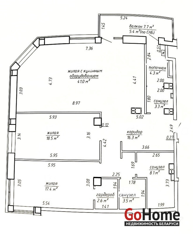 Просторная 3к квартира на Грибоедова в элитном ЖК «Залаты маентак» Продается трехкомнатная квартира с мебелью и техникой в элитном жилом комплексе «Залаты Маёнтак» с домами клубного типа в живописном сквере имени Грибоедова. Респектабельные и статусные соседи. Описание квартиры: • просторная кухня-гостинная 41 м2 • 2 большие спальни 18,5 и 17,4 м2 • высокие потолки около 2,87 метров • просторная гардеробная, 2 санузла • индивидуальное отопление каждой квартиры • постирочная • просторная лоджия 7,7 м2, отличный вид Квартал из семи домов имеет огороженную территорию со спортивной и детскими площадками, зоной отдыха. В самом комплексе есть салон красоты, СПА-комплекс, тренажерный зал и медицинский центр. *В шаговой доступности сквер имени Грибоедова, Парк Победы, музей Великой Отечественной войны, Стела "Минск — город-герой", рядом ТЦ «Корона», ТЦ «Замок». Для семей с детьми недалеко гимназия, школа, детские сады. В доме имеется подземный паркинг с прямым доступом из лифта, есть возможность приобрести машино-место на 1ом этаже паркинга рядом с лифтом. Эта квартира будет отличным выбором для покупателя, ценящего статус и качество квартала, расположение, а также закрытую территорию в центре столицы. Приглашаем на просмотр, вам понравится эта квартира! Торг при осмотре! Окажем содействие в получении выгодного кредита, а также поможем максимально выгодно продать вашу недвижимость для покупки этой. Площадь указана по СНБ Напишите нам в удобный для Вас мессенджер: Viber | Telegram | WhatsApp Ответим на Ваши вопросы, предоставим всю необходимую информацию.
