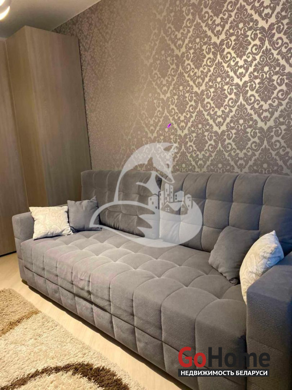 Квартира полностью укомплектована мебелью и техникой. В спальной комнате - большой раскладной диван, телевизор, шкаф.