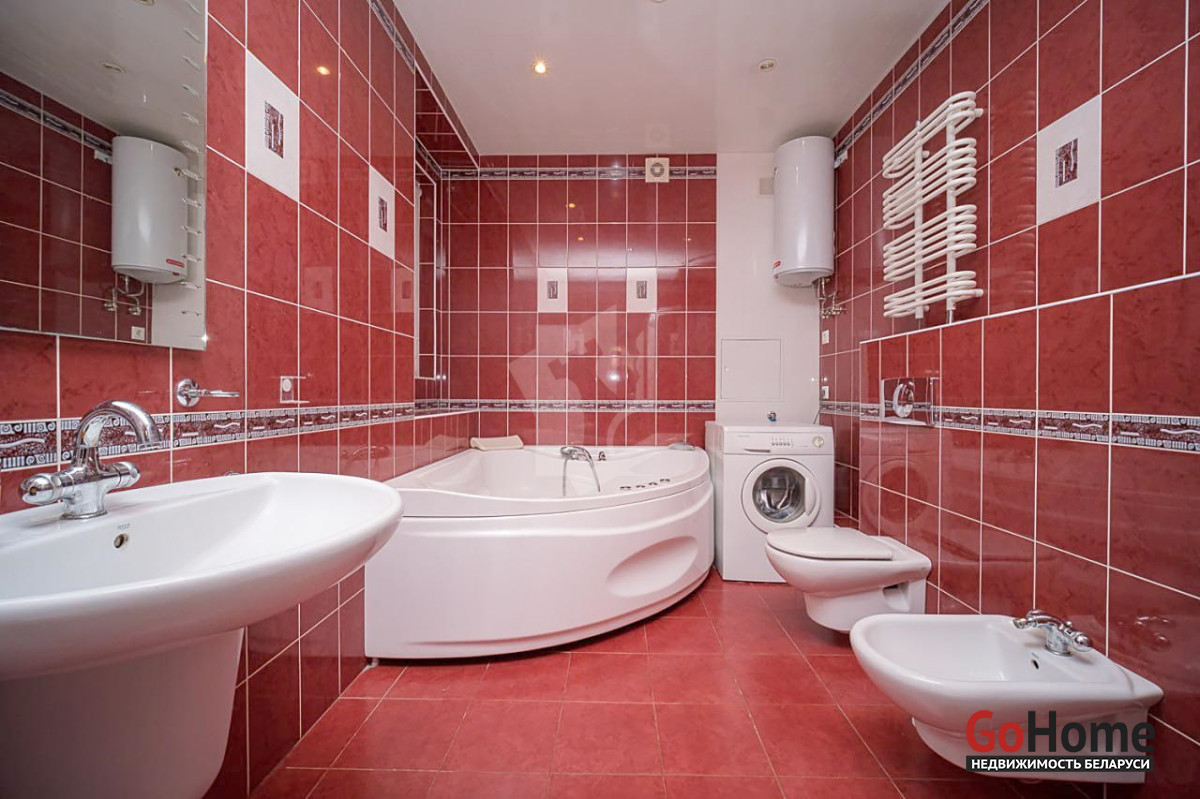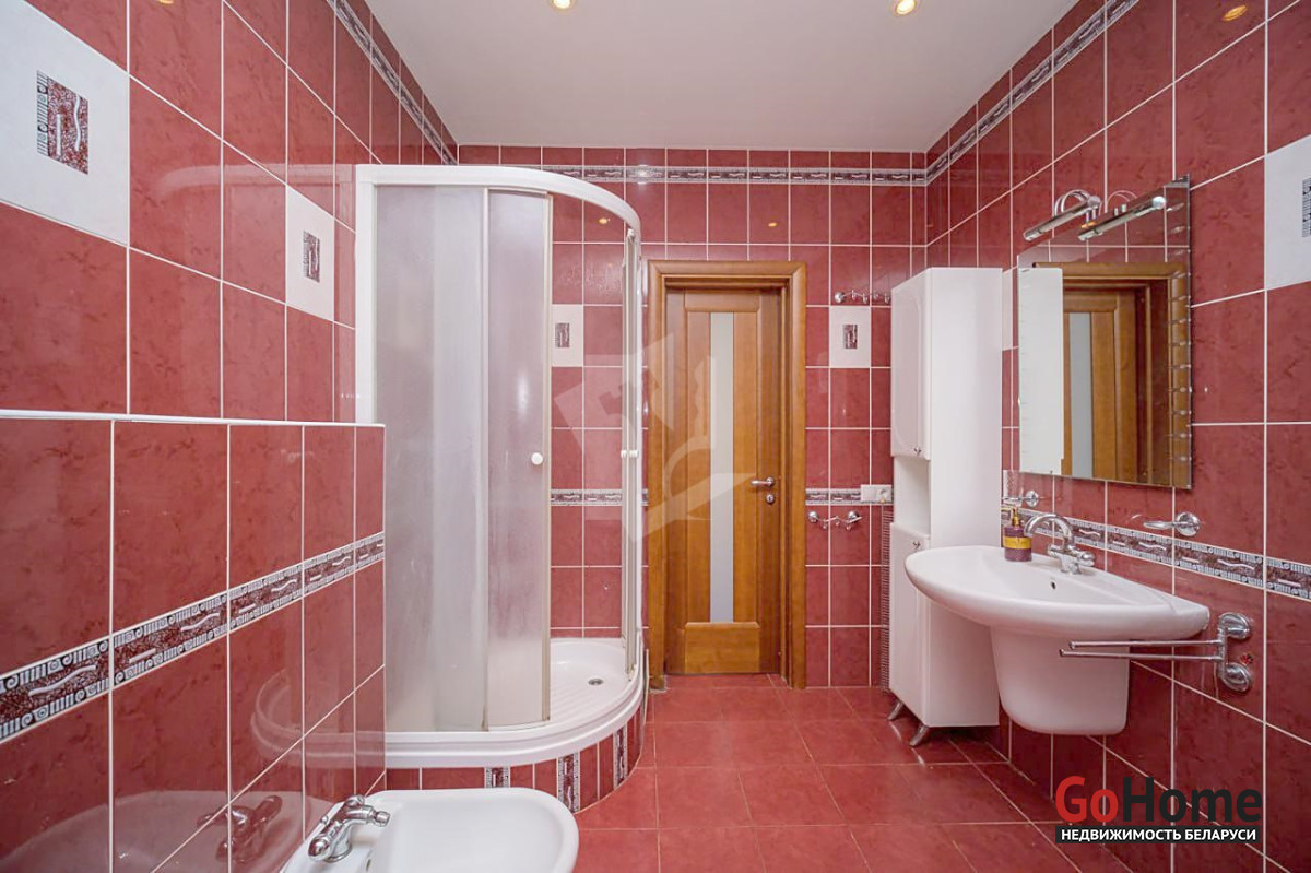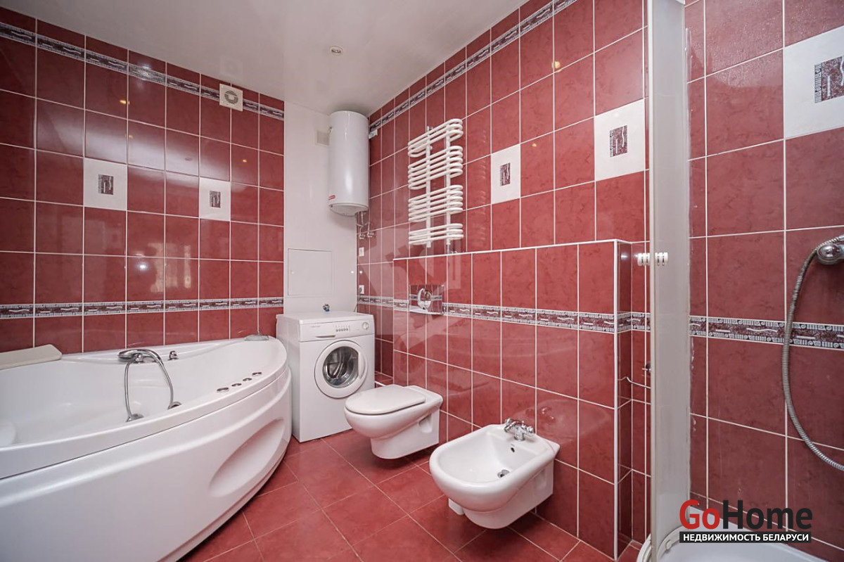 Санузел просторный и полностью оборудован: угловая ванна, душевая кабина, биде.
