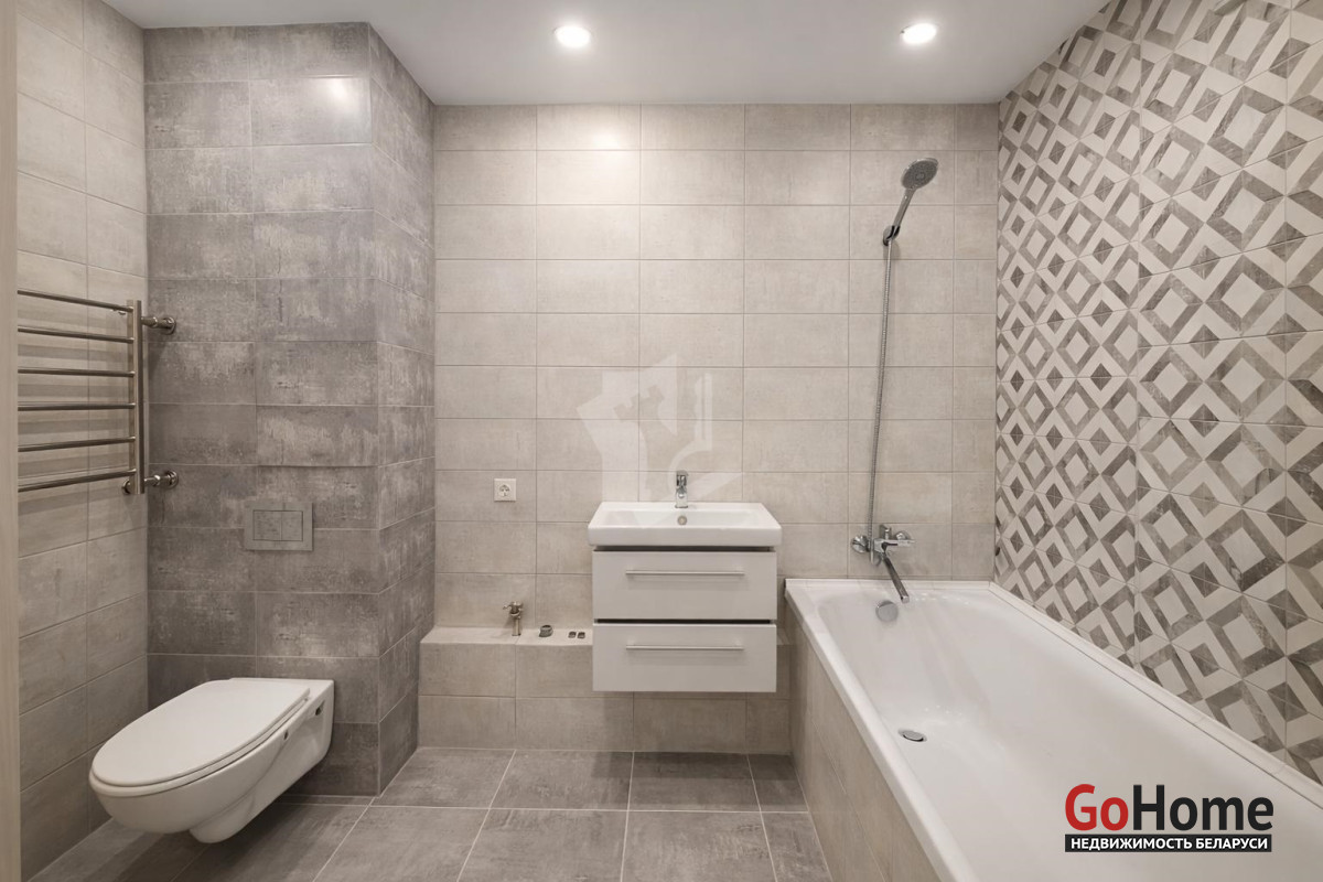 Совмещенный санузел с качественной отделкой и новой сантехникой.