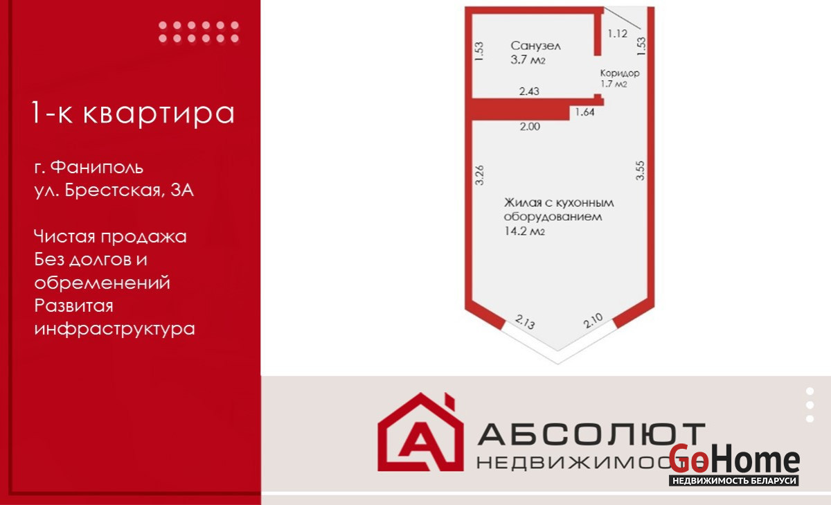 Продается уютная студия 19,6м2 (СНБ) с хорошим евро ремонтом! Идеальный вариант вблизи г. Минска