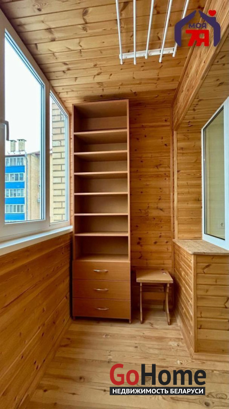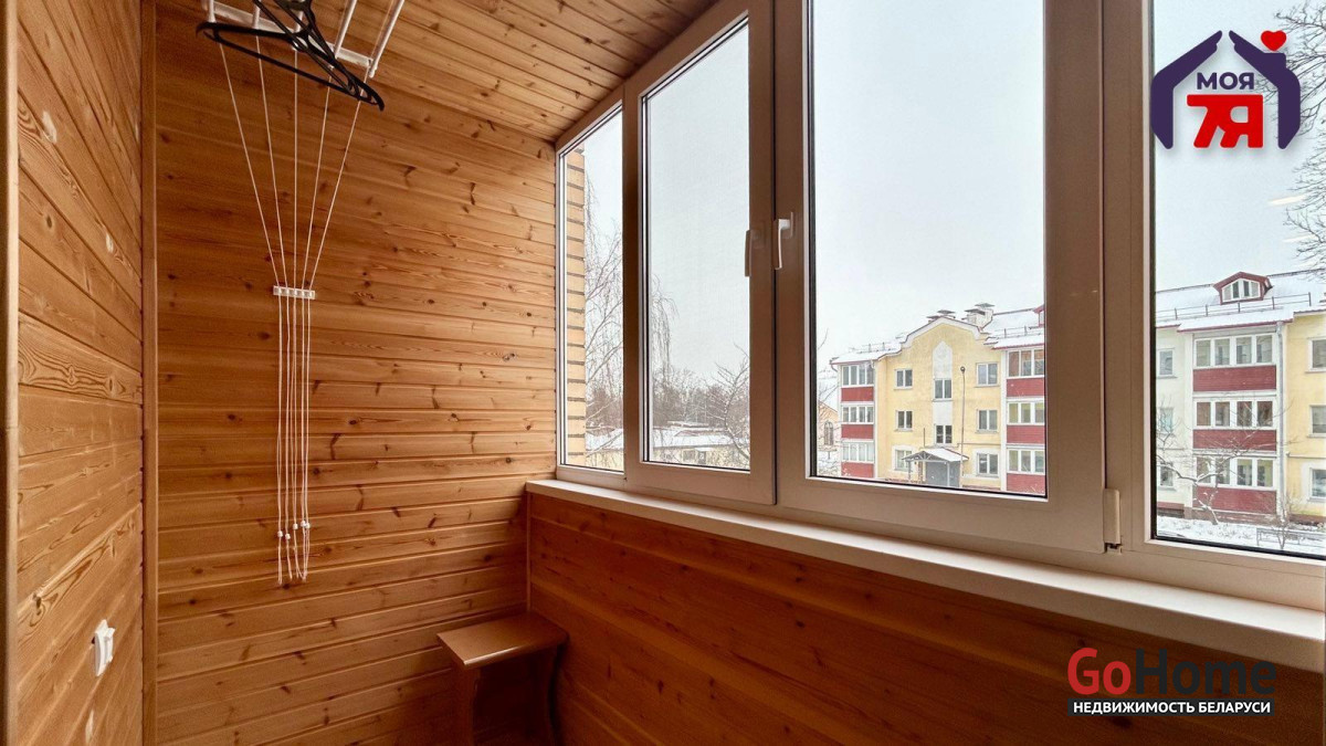 -Лоджия утеплена и обшита вагонкой, окна выходят в тихий зелёный двор - идеальное место для утреннего кофе или небольшого рабочего места.