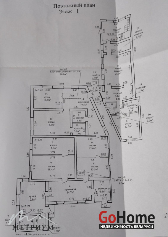 Дом состоит из 4-х жилых комнат, кухни - 12,8 кв. м, просторной прихожей - 14.7 кв. м и раздельного с/узла. Дом выполнен из бруса, а две жилые пристройки (без ремонта) с отдельными входами - из г/с блоков. Каждая из жилых пристроек имеет помещения под кухню, отдельный с/у, гардеробные и просторные комнаты.