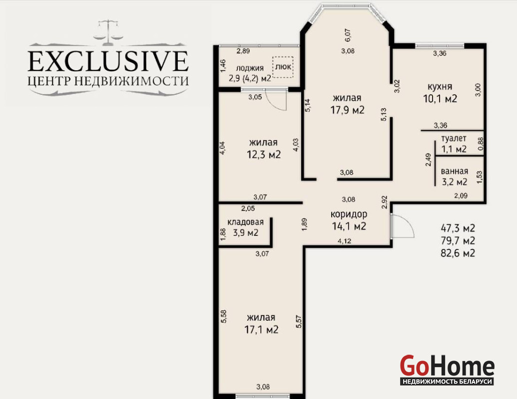 Общая площадь квартиры - 79.7 кв.м.