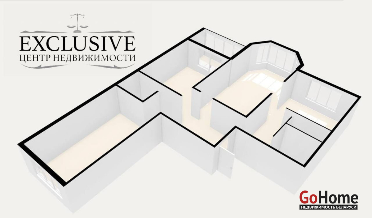 3 изолированные комнаты - 12.3 кв.м (с выходом на просторною лоджию), 17.9 кв.м. и 17.1 кв.м.