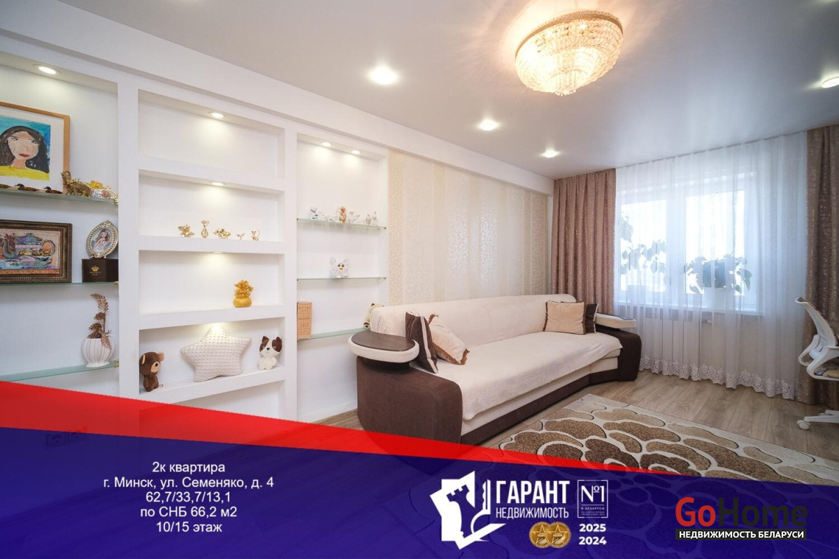 Продается просторная (66м2) двухкомнатная квартира с большой (13.1м2) кухней в доме 2013 года постройки ул.Семеняко, д.4. Высокий, десятый, этаж