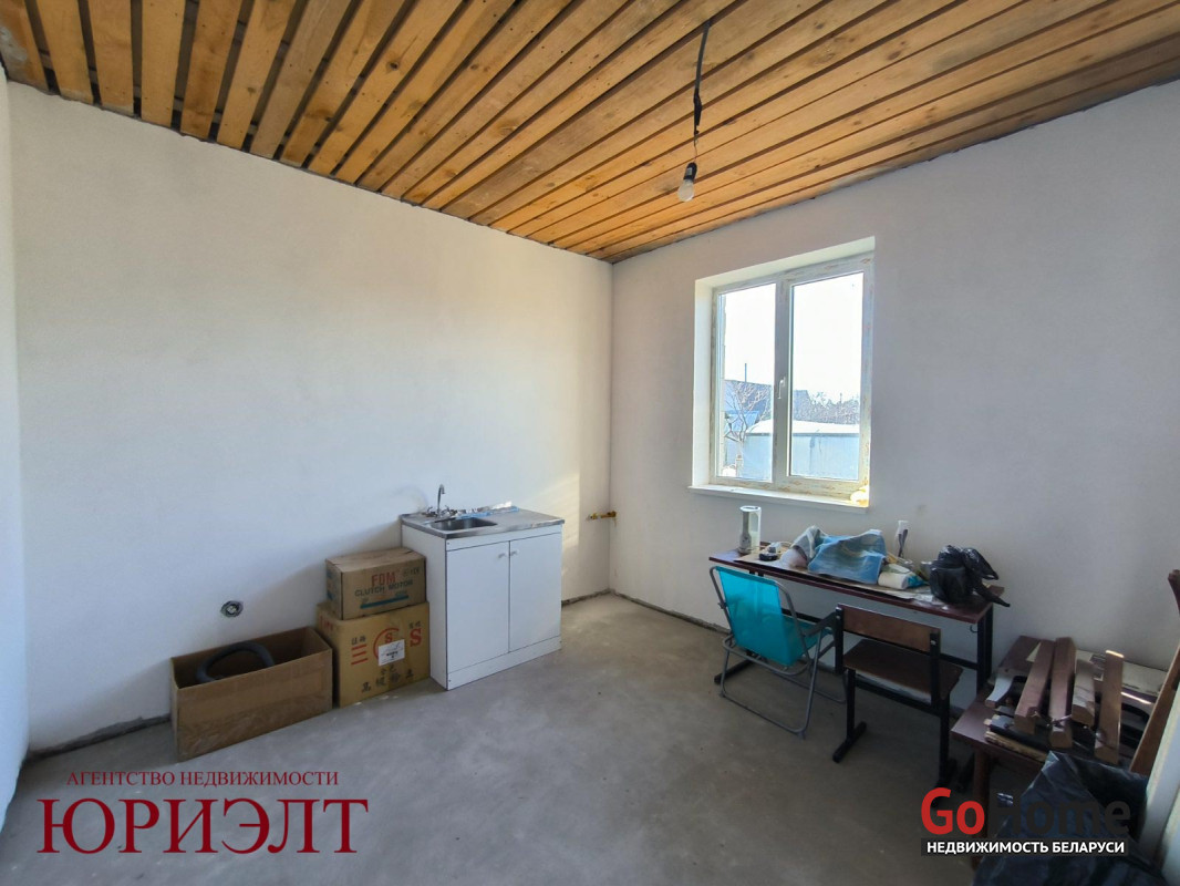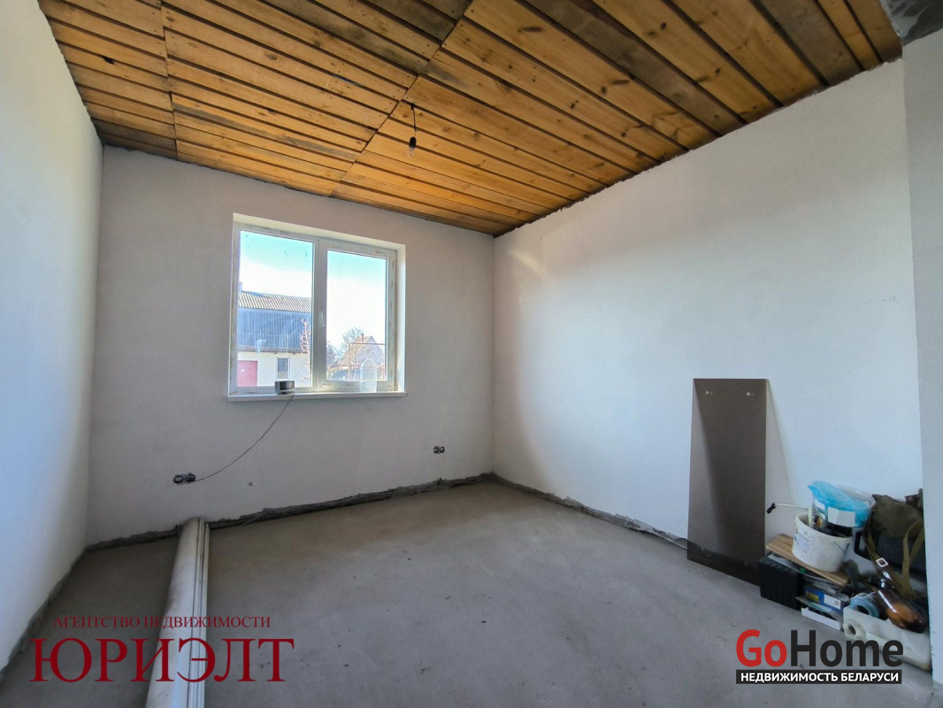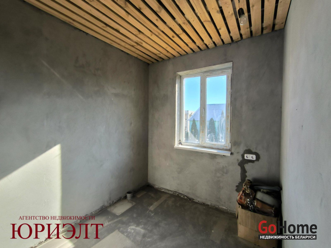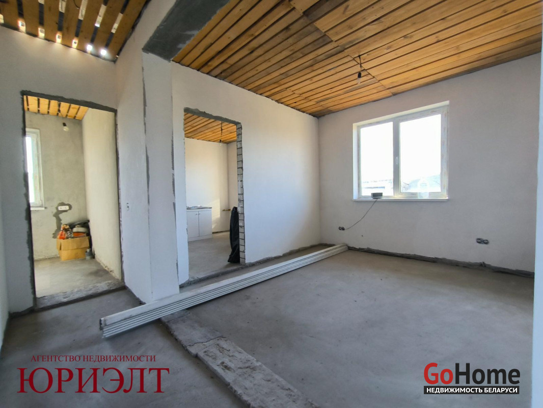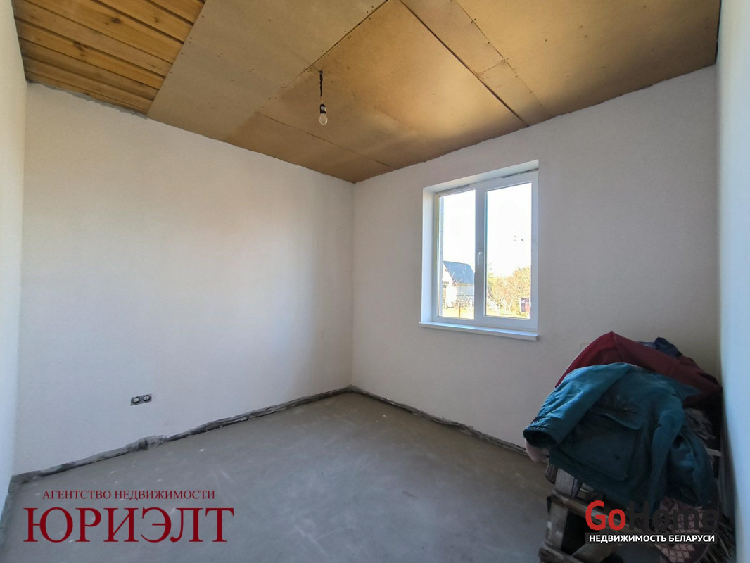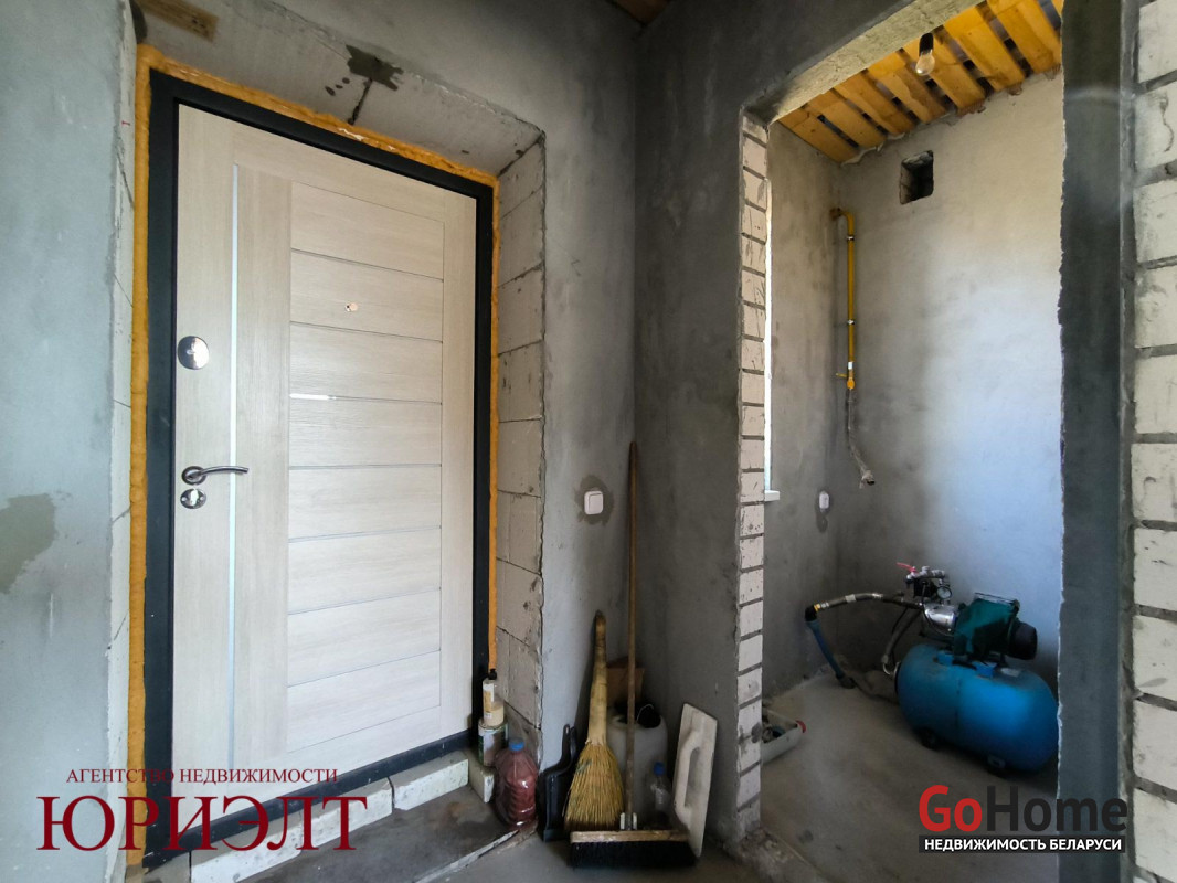Дом подготовлен под отделку: разведены электрика, вода и канализация, стены пошпатлеваны, пол - черновая стяжка. Установлены окна ПВХ и металлическая входная дверь.