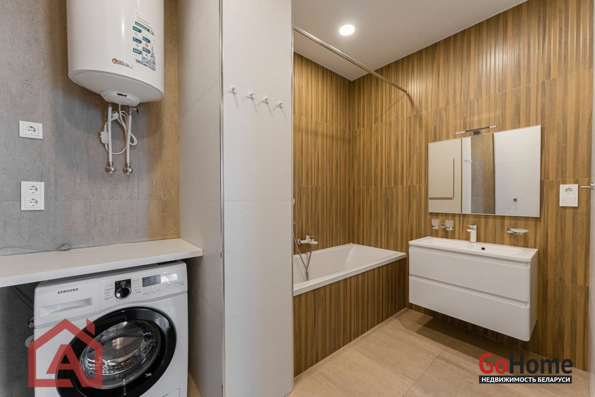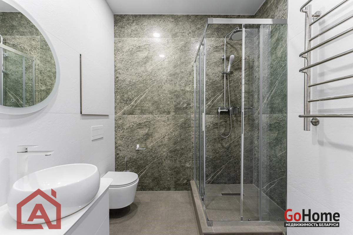 На 73-х квадратов расположились : кухня-гостиная, 2 жилые комнаты (одна из которых мастер-спальня), лоджия. В квартире 2 полноценных санузла , есть и ванна и душевая кабина.