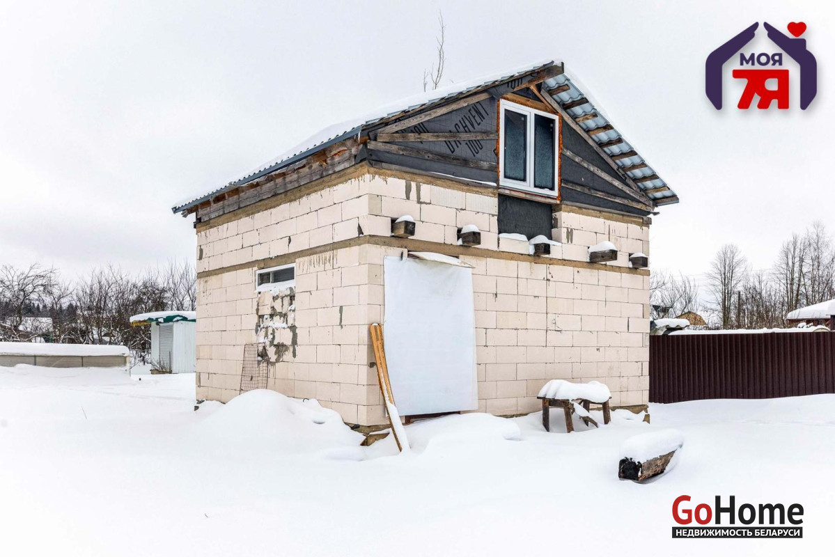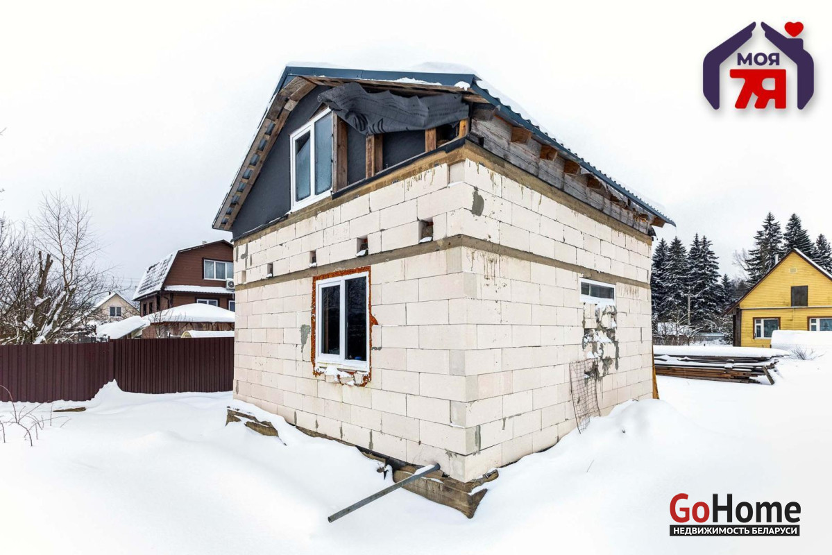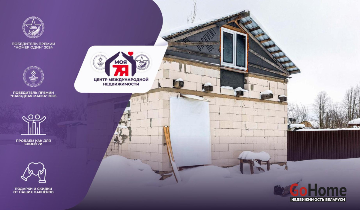 -На участке уже стоит недостроенный дом общей площадью 50 кв.м. Дом блочный, крыша покрыта металлочерепицей, то есть один из самых затратных и важных этапов строительства уже выполнен. Установлены ПВХ-окна - дом защищён от осадков и готов к дальнейшим работам в любое время. Это даёт вам серьёзную экономию по сравнению со строительством «с нуля», при этом вы не переплачиваете за чужой ремонт