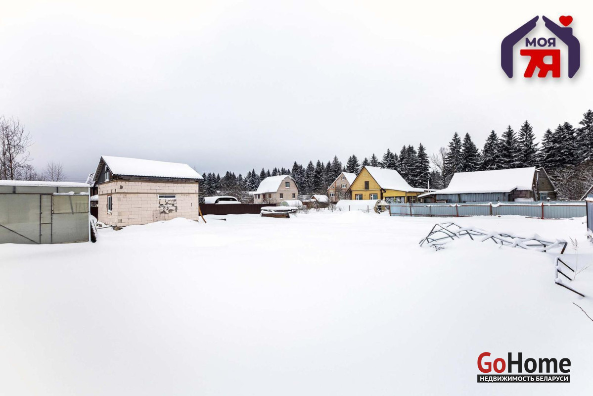 ️ Участок 8 соток с недостроенным домом в СТ "Лесное-90" у реки Вяча, Минский район. Электричество подведено, газ по улице, ПВХ-окна, металлочерепица, удобный подъезд. Остановка и магазин в СТ, лес и пляжи рядом, 15 минут от МКАД.