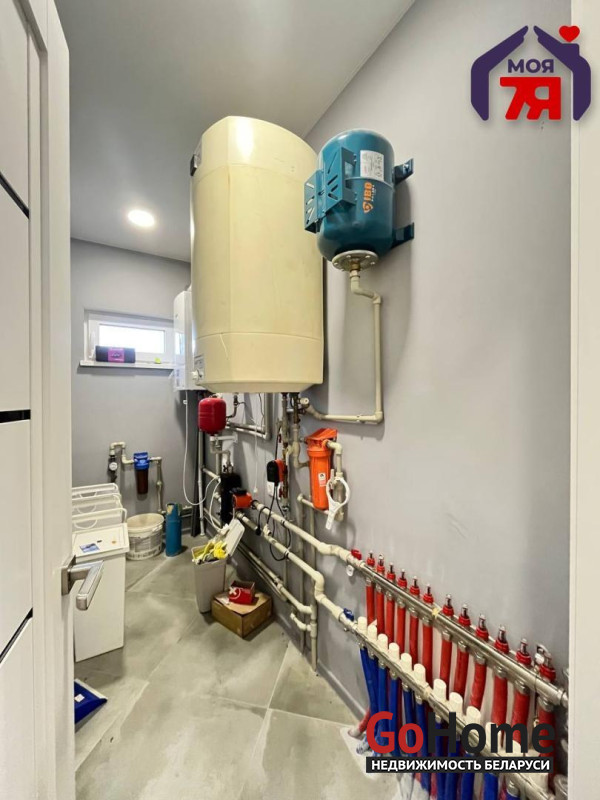 -В дом введены все необходимые коммуникации: водоснабжение осуществляется через скважин, канализация местная с переливным септиком, газовый котел Bosch топовой версии 7000 отвечает за отопление и горячую воду, предоставляя вам максимальную энергоэффективность.
