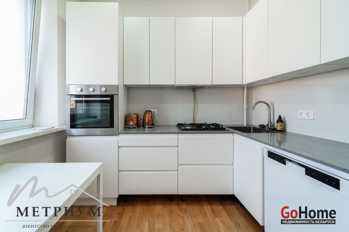 Видовая 2-х комнатная квартира 59,9 м.кв., улица Козлова 2, метро Площадь Победы. Центр Минска, отличный вид из окон на Костел и проспект Независимости. 4-ый комфортный этаж, чистый, просторный подъезд, хорошие соседи. Продуманная планировка включает две раздельные комнаты, хозяйственную комнату. Высокие потолки, ремонт в светлых тонах, качественные материалы создают атмосферу уюта и спокойствия. В ходе ремонта произведена замена электро проводки, других коммуникаций. На полу массив дуба. Дизайн кухни позволил максимально сохранить свободное пространство, обеспечив при этом функциональность и уют. Качественная мебель, столешница из камня. Духовой шкаф и газовая плита ZorG. В ванной комнате плитка производства Испании, сантехника бренда Teka.