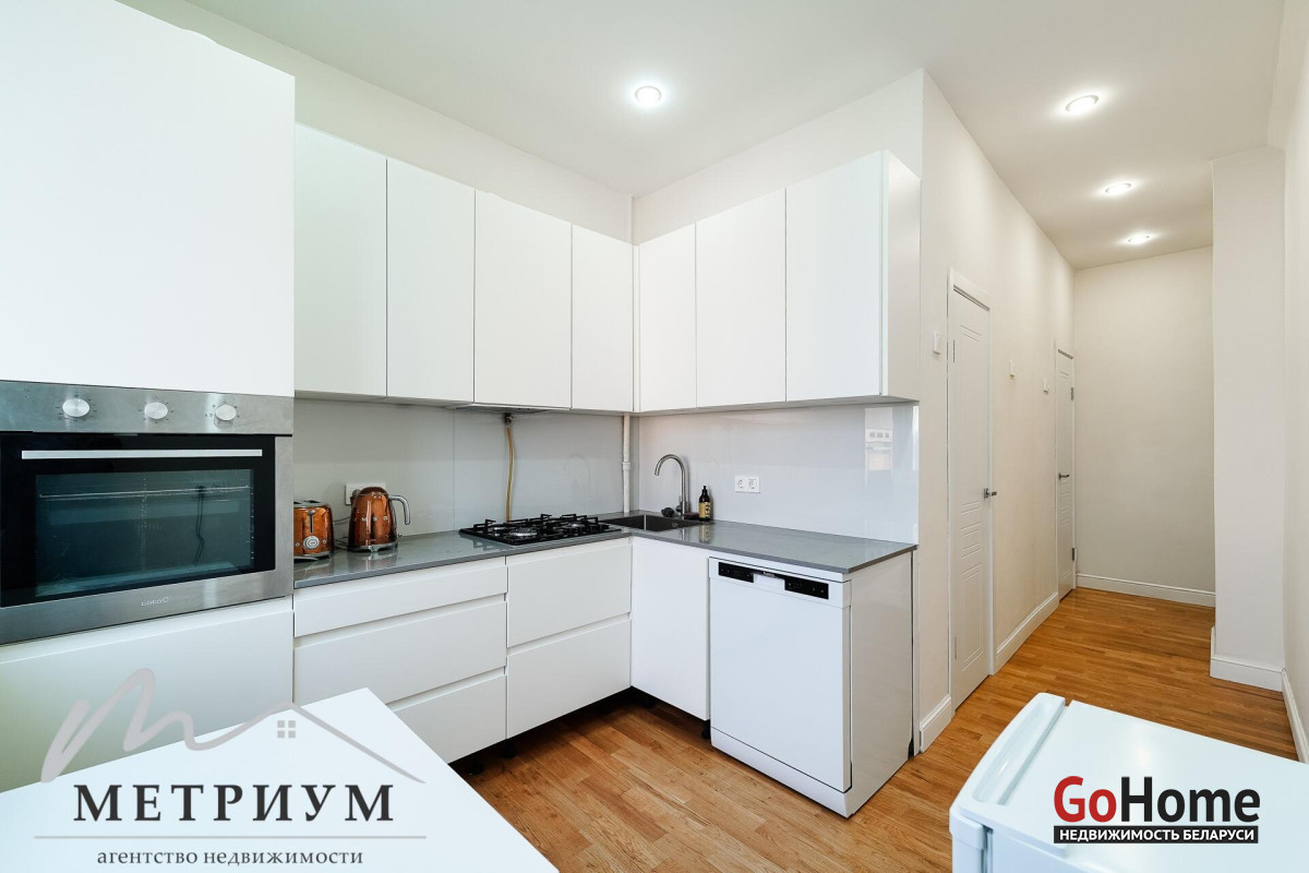 2-х комнатная квартира 59,9 м.кв., улица Козлова 2, метро Площадь Победы. Центр Минска, отличный вид из окон. 4-ый комфортный этаж, чистый, просторный подъезд, хорошие соседи. Продуманная планировка включает две раздельные комнаты, хозяйственную комнату. Высокие потолки, ремонт в светлых тонах, качественные материалы создают атмосферу уюта и спокойствия. На полу массив. Дизайн кухни позволил максимально сохранить свободное пространство, обеспечив при этом функциональность и уют.