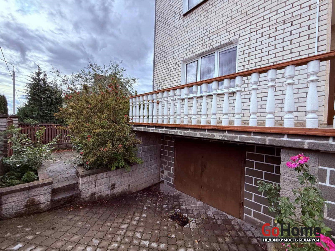 Имеется цокольный этаж, где расположены кладовые, котельная и гараж.