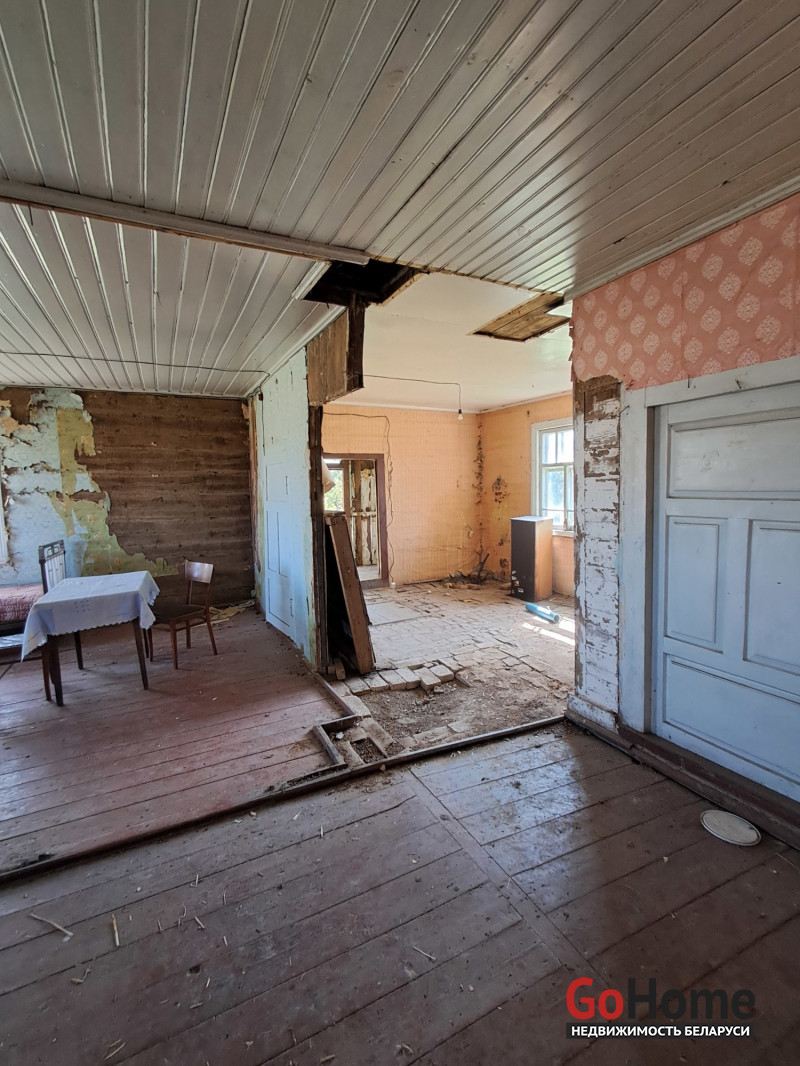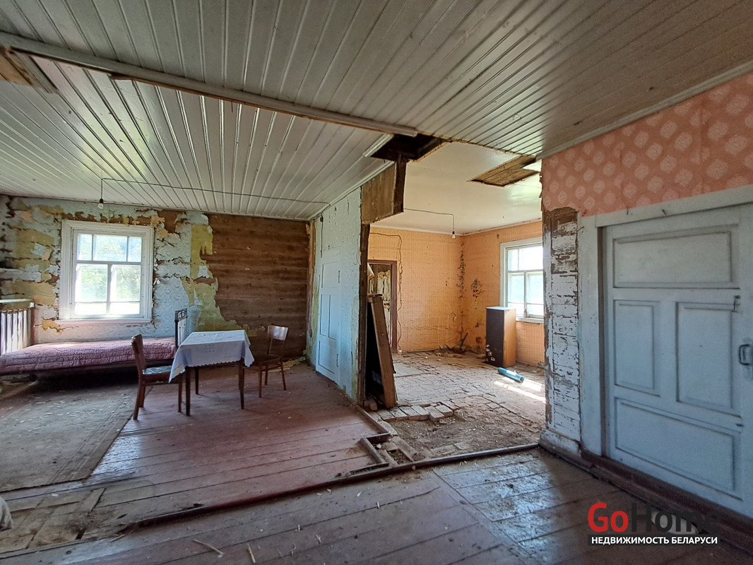 Дом высокий из бруса,1950 года постройки, очень просторный, с высокими стенами и огромный чердаком, но требует капитального ремонта и реконструкции, для возможности постоянного проживания. В доме имеется большой погреб.