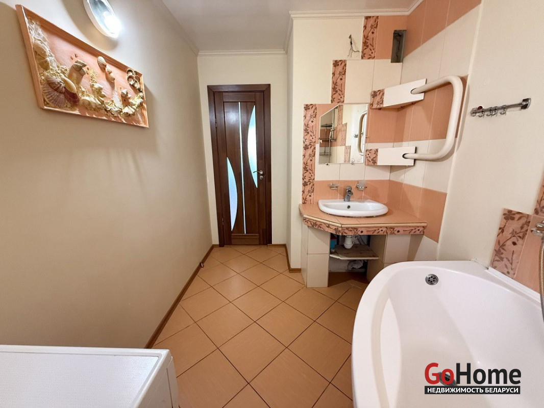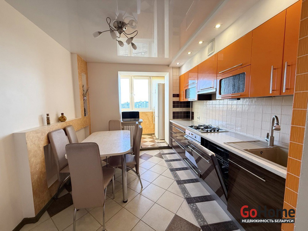Функциональная и удобная планировка квартиры: общая площадь - 74.5 метров квадратных, жилая - 42.5 метров квадратных, кухня - 9.4 метров квадратных. Достаточно просторный коридор – 15.1 метров квадратных. Металлическая входная дверь. Квартира укомплектована встраиваемой техникой (посудомоечная машина, духовой шкаф, варочная панель) и мебелью. В комнатах пол выложен ламинатом. Санузел раздельный, облицован плиткой. Лоджия утеплена и застеклена. Оконное остекление осуществлено энергосберегающими стеклопакетами. За квартирой закреплена подвальная ячейка.