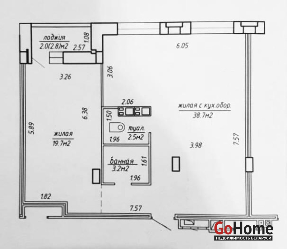 - просторная лоджия - 2,8 м²;
