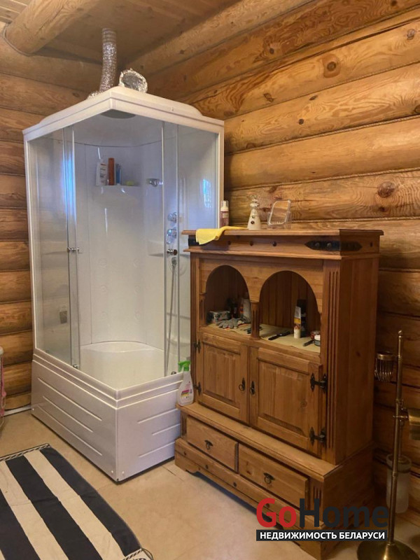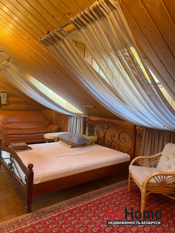 На живописном берегу этого уникального водоема расположен дом из оцилиндрованного вручную бревна (диаметр — 380 мм). Одноэтажный с мансардой "в свету" и уютным балконом с потрясающим видом на озеро. Общая площадь дома — 168 м².