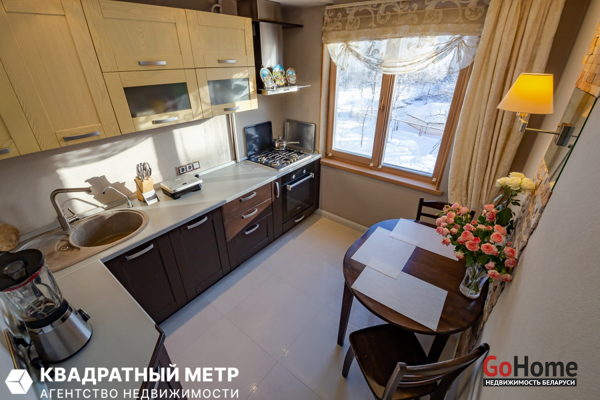 Продаётся 3 комнатная квартира с отличным ремонтом в Минске – Первомайский район, ул. Тикоцкого, дом 26, на 3-м этаже 9 ти-этажного панельного дома 1976 года постройки. Зелёный луг-5. До метро «Восток» – 4 остановки общественного транспорта.