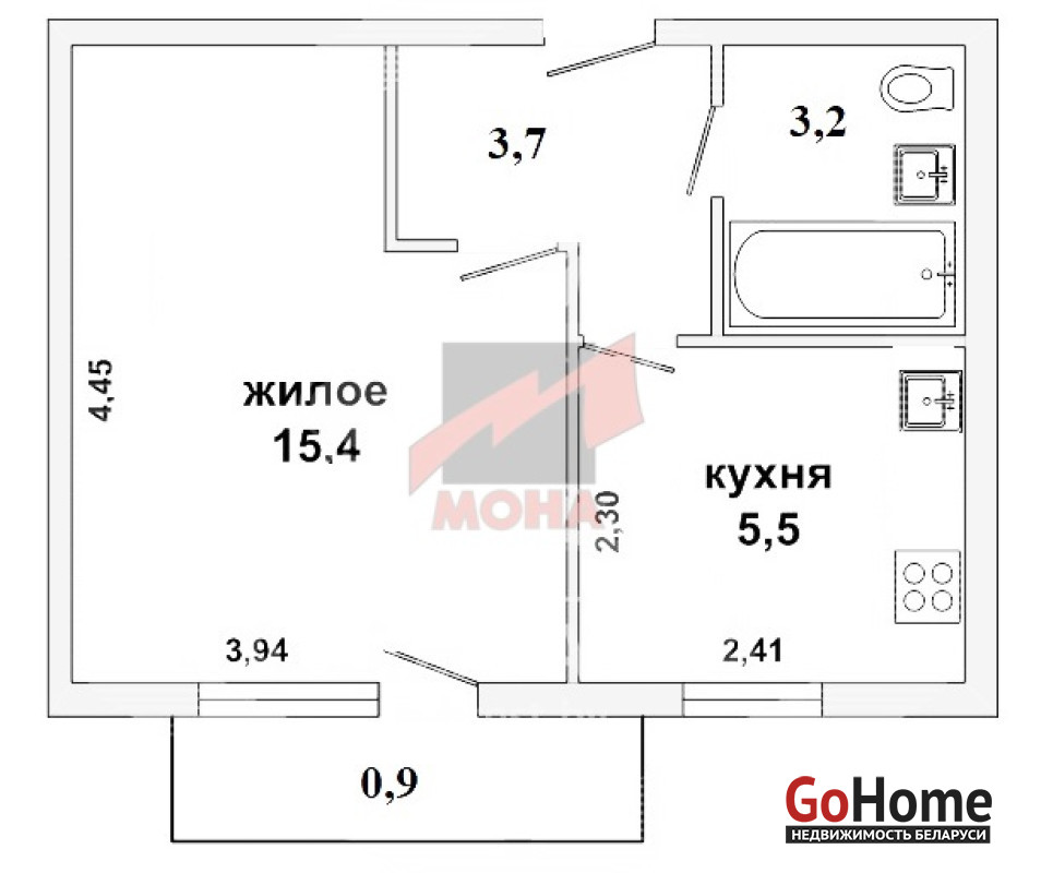 Площади: 28,7/15,4/5,5 м2. С/у совмещён, балкон застеклён, утеплён, установлены рольшторы. Имеется подвальное помещение.