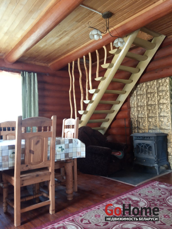 - Одноэтажный бревенчатый дом с жилой мансардой 2008 года постройки , общей площадью 95,8 кв.м. Состоящий из двух жилых комнат, кухни, санузла – на 1-м этаже, и трёх жилых комнат – на 2-м этаже (мансарде). Отопление дома осуществляется от камина и электроконвекторов.