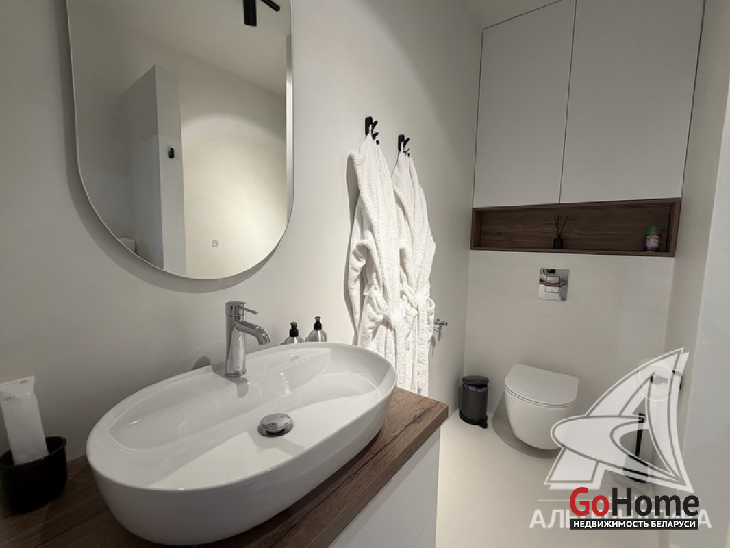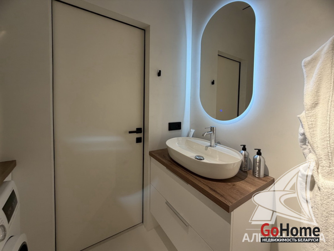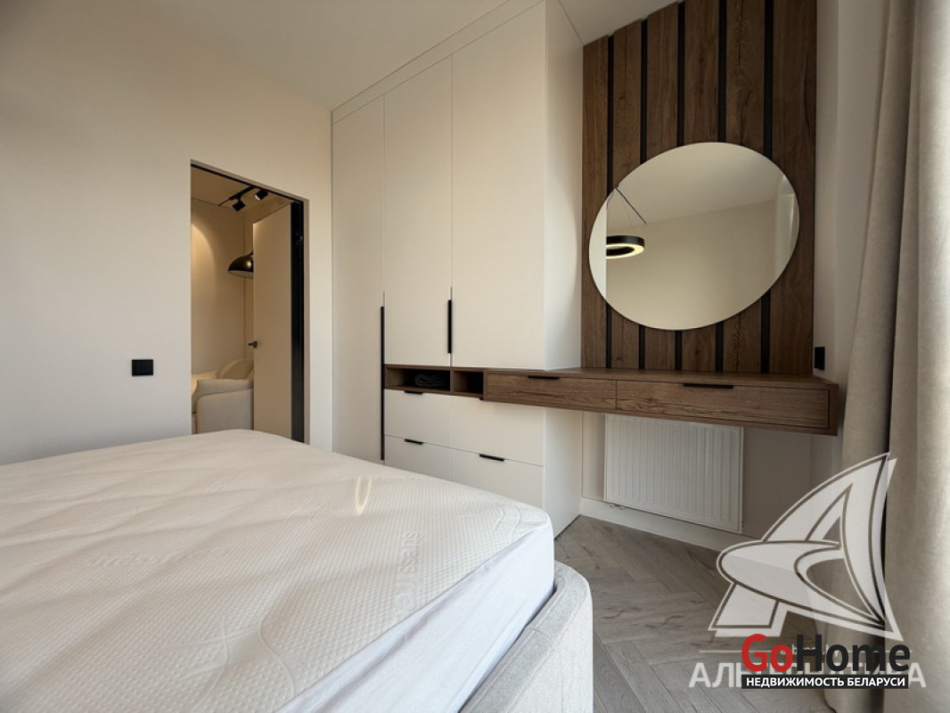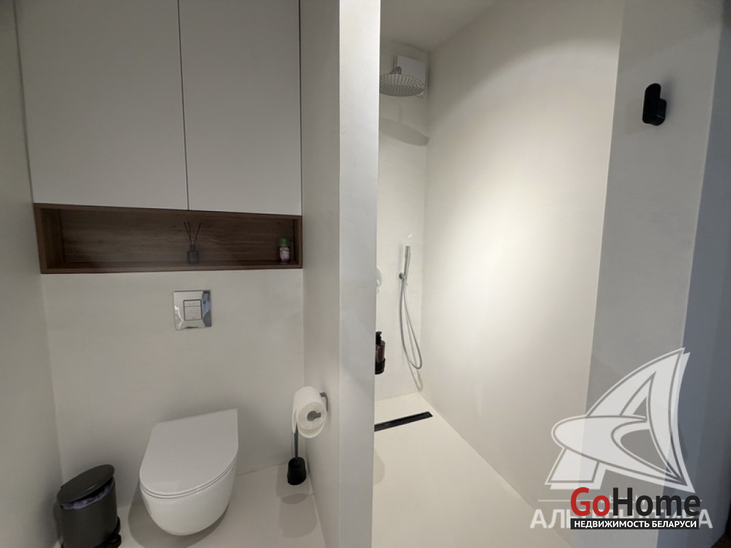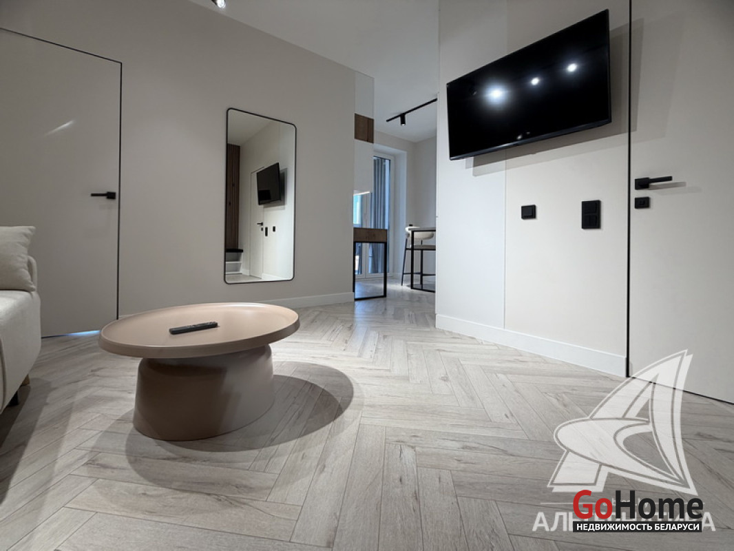 1-комнатная квартира, г. Брест, ул. Гоголя, 2024 г.п., 5 / 10 кирпич, 41,3 / 38,4 / 33,3 / -, санузел совмещенный, лоджия застеклена, стеклопакеты, окна во французском стиле (в спальне), межкомнатные двери скрытого монтажа, входная дверь металлическая, потолки из гипсокартона (2,73 м), полы (положены на стяжку) - ламинат, на стенах декоративная окраска, в санузле современная плитка и микроцемент, инсталляция, душевая кабина, кондиционер, домофон. Кухонный гарнитур, варочная поверхность, духовой шкаф, вытяжка, посудомоечная машина, микроволновая печь, холодильник, стиральная машина, барные стулья, диван, спальный гарнитур, шкаф, зеркало, сантехническое оборудование. Квартира с индивидуальными дизайнерскими решениями. Один грузопассажирский лифт. Установлен шлагбаум. Система видеонаблюдения. Во дворе парковка для автомобилей. Лот - 260303