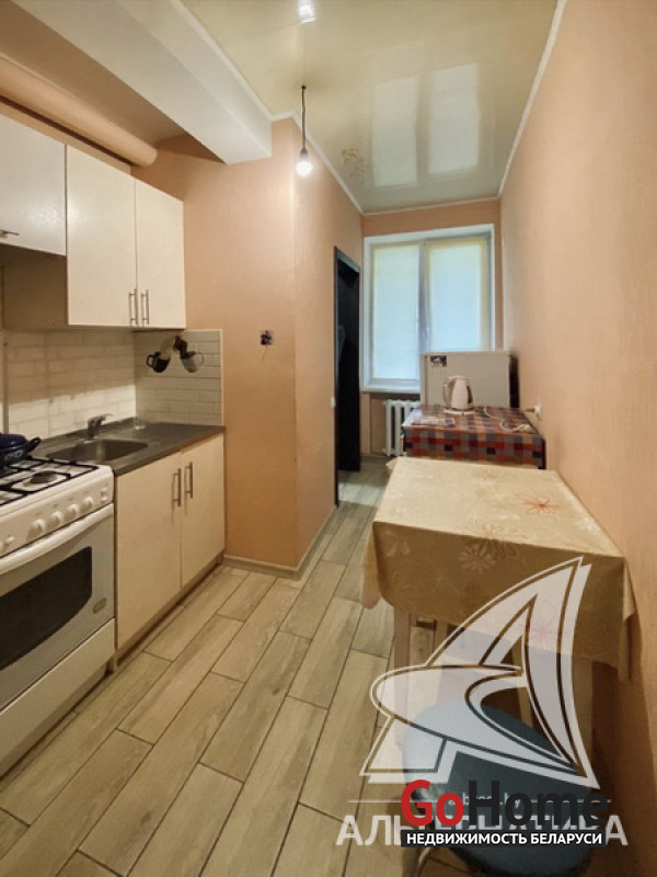1-комнатная квартира, г. Брест, ул. Карасева, 1954 г.п., 2 / 2 кирпич, 24,5 / 24,5 / 15,6 / 7,2, санузел совмещенный, сарай (во дворе), стеклопакеты, входная дверь металлическая, потолки (2,55 м) - натяжной (в комнате) и сайдинг (в кухне), полы - плитка (в кухне), стены оклеены обоями, в санузле современная плитка, установлен бойлер, душевая кабина, телефон. Кухонный гарнитур, газовая плита, стиральная машина. Квартира в жилом состоянии. Капитальный ремонт дома 2015 г. Лот - 260297