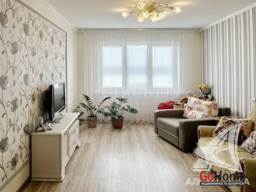 Срочно! 4-комнатная квартира, г. Брест, ул. Октябрьской Революции, 1990 г.п., 6 / 9 панель, 87,1 / 82,0 / 53,3 / 12,6, санузел раздельный, две лоджии застеклены, стеклопакеты, межкомнатные двери - массив, входная дверь металлическая, потолки (2,5 м) - снежка и натяжной (глянец, в кухне), многоуровневые (в коридоре), полы (положены на ДСП) - ламинат и плитка (в коридоре, в кухне), на стенах декоративная отделка штукатуркой (в коридоре) и обои, в санузле современная плитка, заменена сантехника, заменен полотенцесушитель, заменены сантехнические трубы, чугунная ванна, домофон. Кухонный гарнитур, шкаф-купе, система хранения в гардеробной. Квартира с хорошим ремонтом. Квартира расположена на две стороны. Один новый пассажирский лифт. На этаже оборудована сушилка. Капитальный ремонт дома 2026 г. Во дворе парковка для автомобилей. Лот - 260285