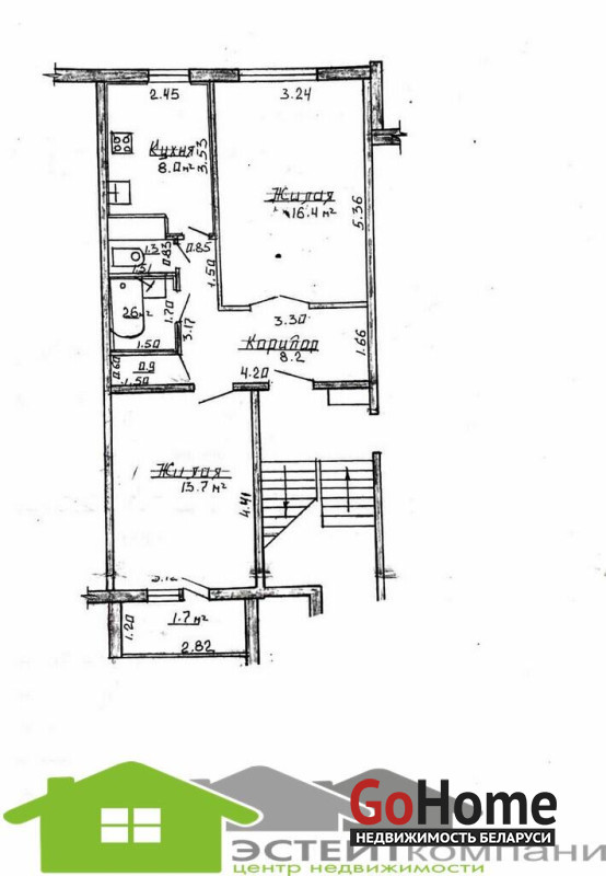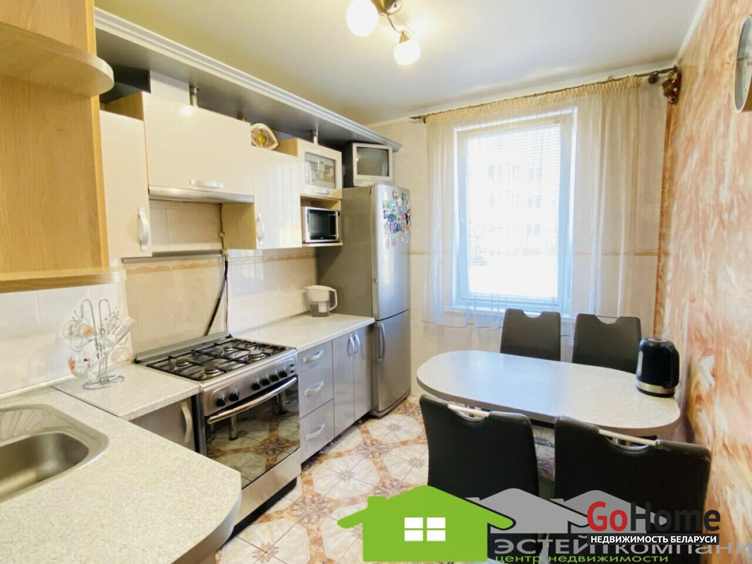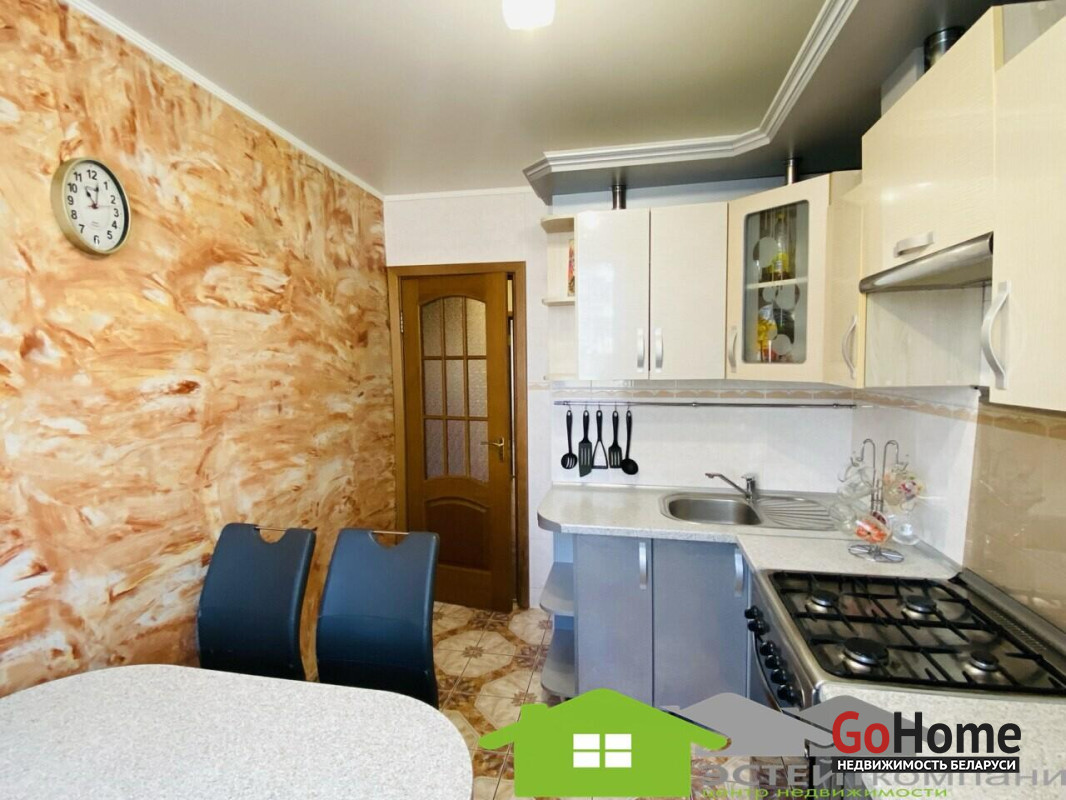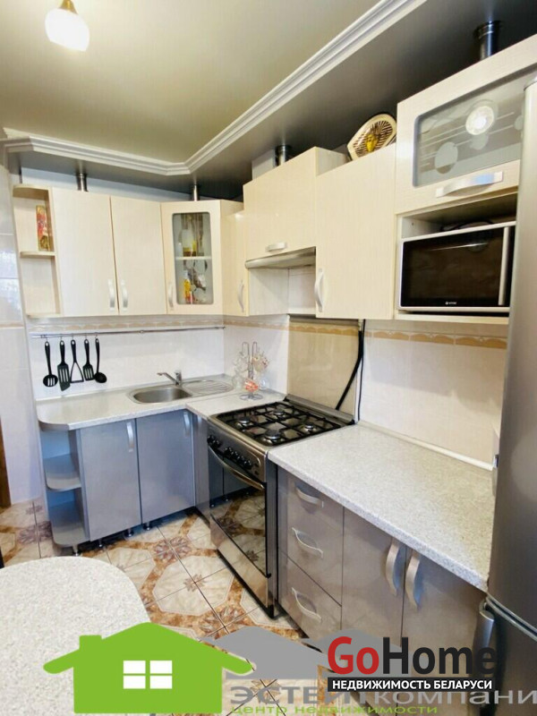 В квартире остается кухонный гарнитур и шкаф купе.