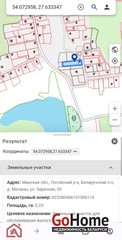 Продается просторный земельный участок 25 соток с домом, 12 км от МКАД в современной деревне Мочаны, ул.Заречная, 33 (Мядельское направление, Логойский район, Беларучский с/с).