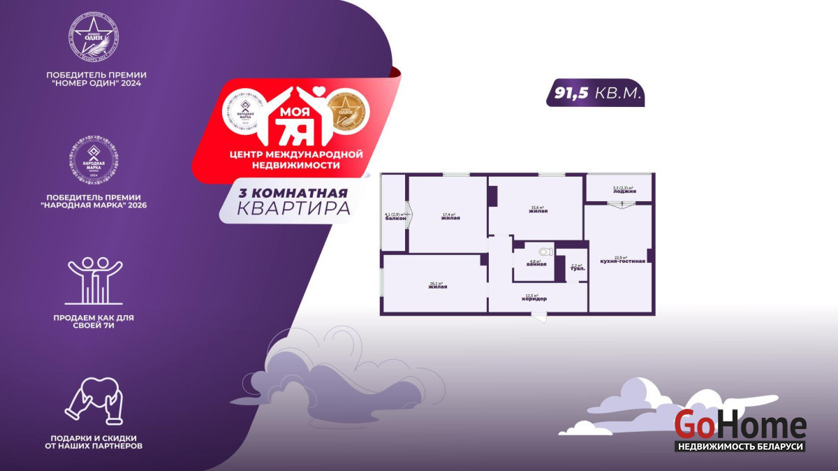 ️Продается прекрасная трехкомнатная квартира в Минске, которая станет уютным домом для вашей семьи. Квартира общей площадью 91,5 м2 и жилой площадью 56,4 м2 подарит вам простор и комфорт для повседневной жизни. Все комнаты в квартире изолированы, что создает уют и приватность для каждого члена семьи.