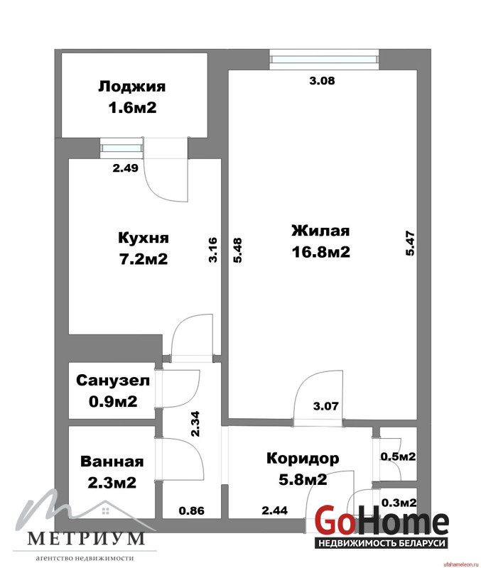 лоджия 1,6 м.кв и раздельный санузел.