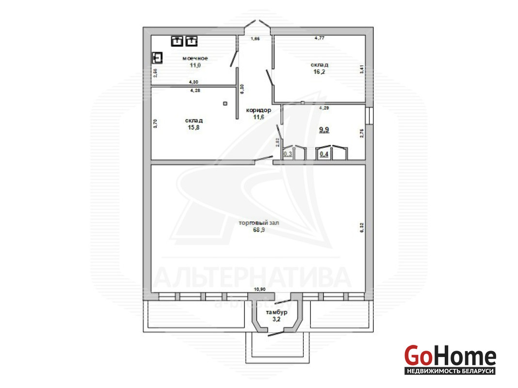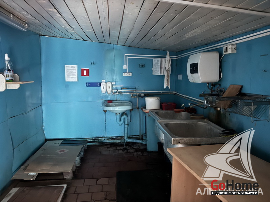Здание магазина в собственность в городе Кобрин Брестской области общей площадью 138,3 кв.м, расположенное на земельном участке площадью 0,0681 га. Отдельно стоящее капитальное строение. Торговый зал площадью 68,9 кв.м, тамбур (3,2 кв.м), 2 (два) складских помещения (16,2 + 15,8 кв.м), подсобное помещение (11 кв.м), кабинет (11,6 кв.м), коридор (11,6 кв.м. Технические характеристики здания: фундамент бетонный, полы - плитка, стены каркасные, перекрытия деревянные, крыша рулонная, окна, двери - ПВХ. Дополнительный выход во двор. Коммуникации: электричество - 220, 380 Вт, водоснабжение центральное, бойлер на горячую воду, канализация местная, газ подведен к зданию. Установлена пожарная сигнализация, кондиционеры, индивидуальные приборы учета электроэнергии и водоснабжения. Земельный участок площадью 0,0681 га предоставлен собственнику в постоянное пользование. Цена указана с НДС. Рассматриваются все варианты. Лот - 260250