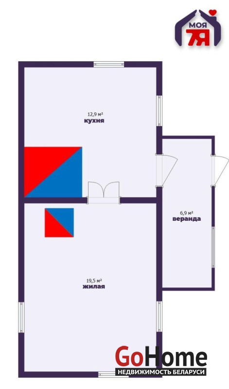 - Одноэтажный бревенчатый дом, 1949 года постройки, без реконструкций. Общая площадь дома — 39,3 м2, жилая — 19,5 м2, кухня — 12,9 м2 — просторная для дома такого формата.