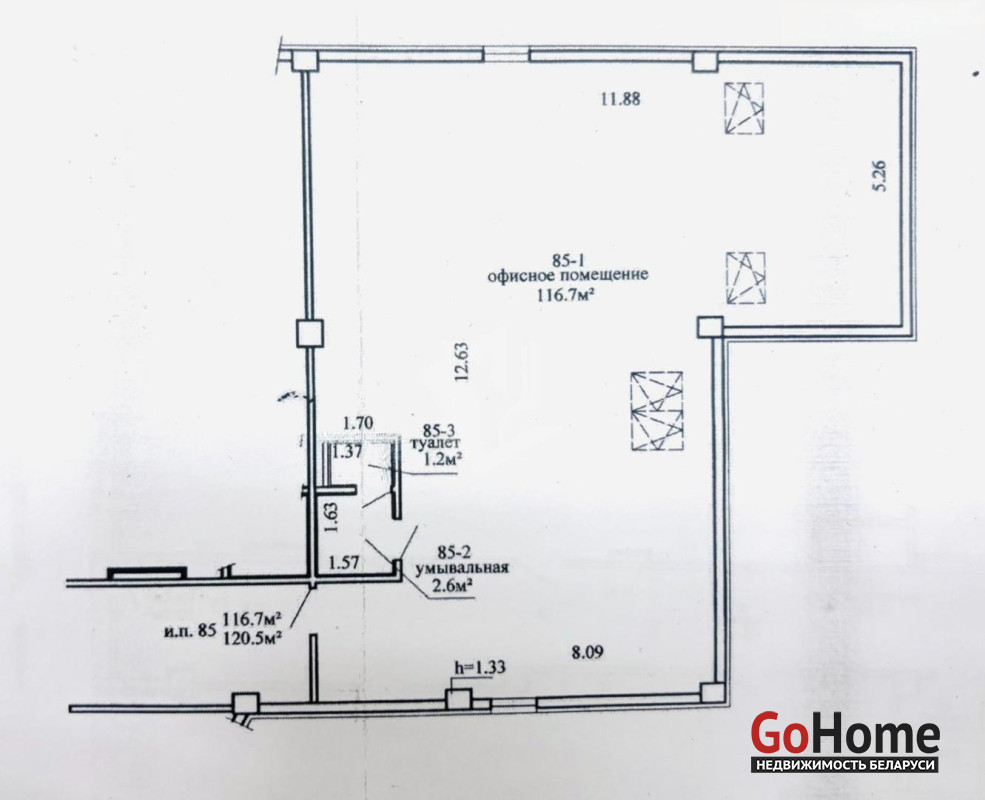 - Площадь 120,5 м2, 6-й этаж, высота потолков до 3 м;