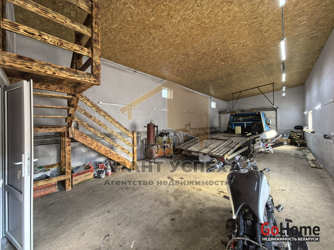Может быть использовано как склад, автосервис, магазин, спортзал и т.п. Высокие потолки. На втором этаже организован кабинет.