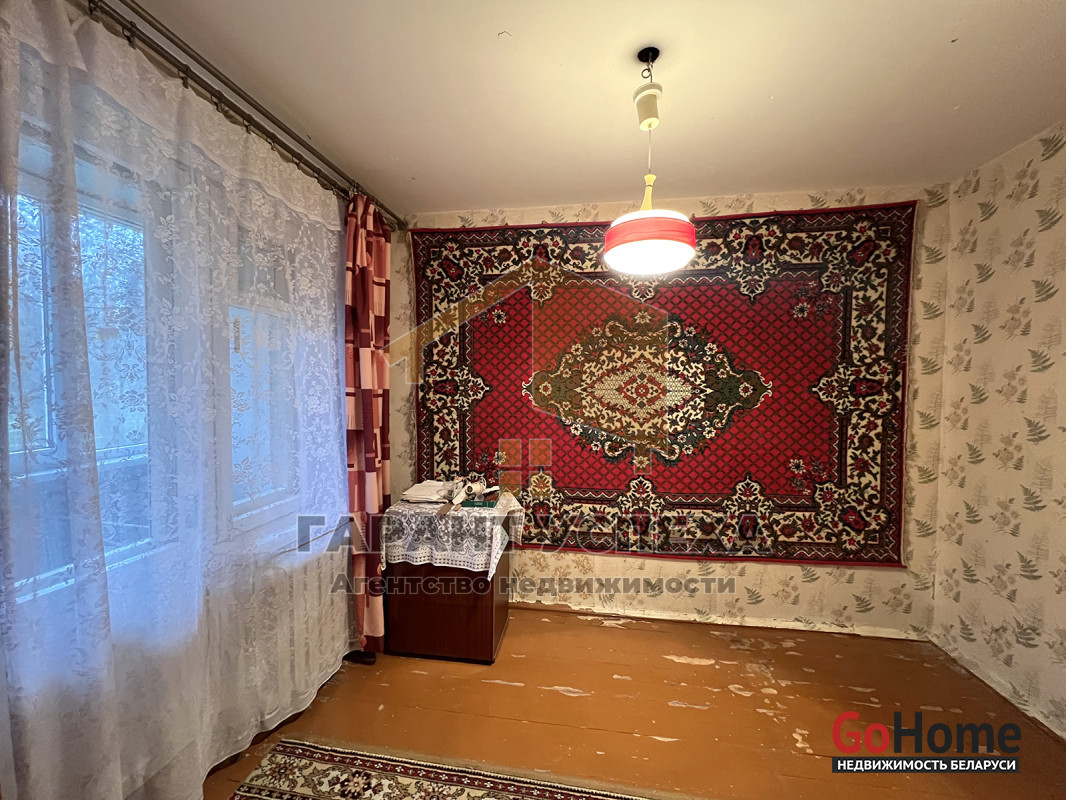Квартира в жилом состоянии. Частично установлены стеклопакеты ПВХ. Полоток - выровнен и окрашен снежкой. Напольное покрытие - крашеная доска, ДВП. Входная дверь - деревянная.