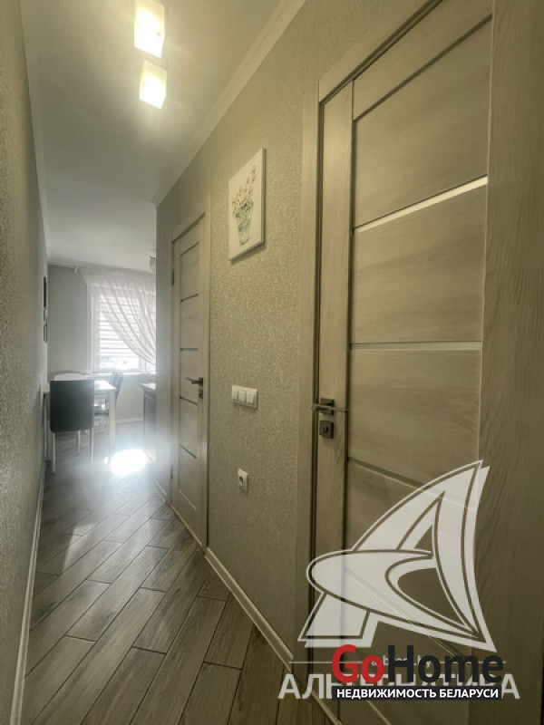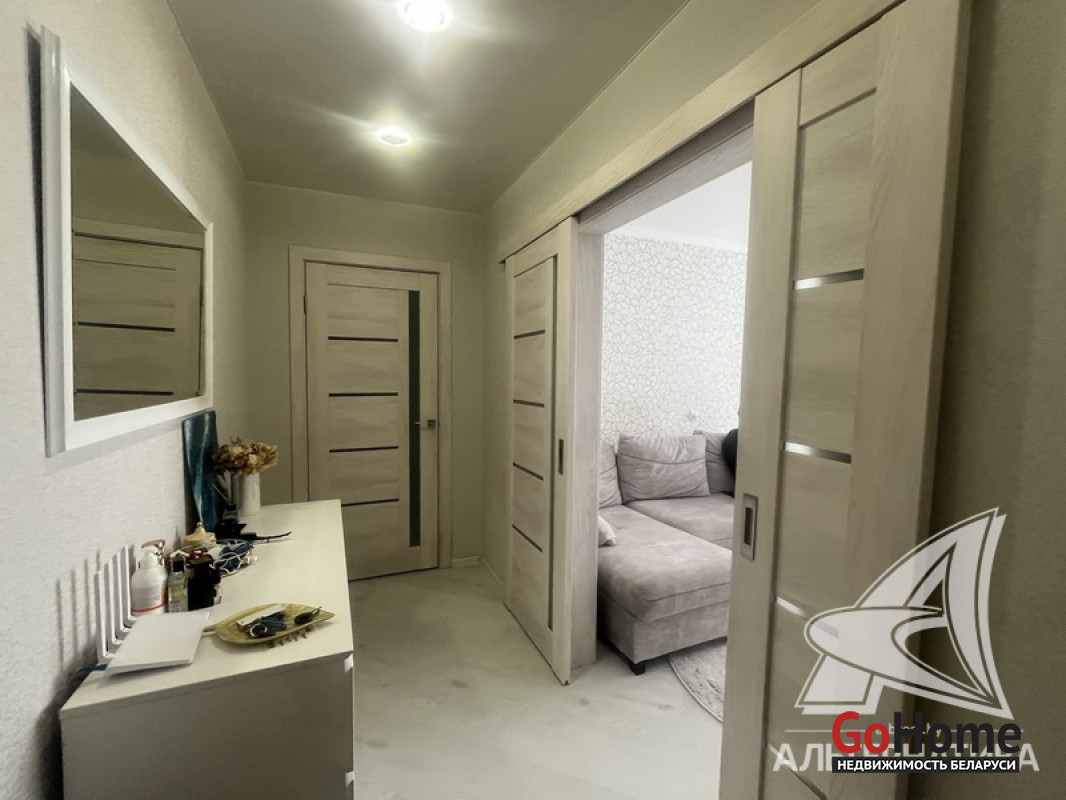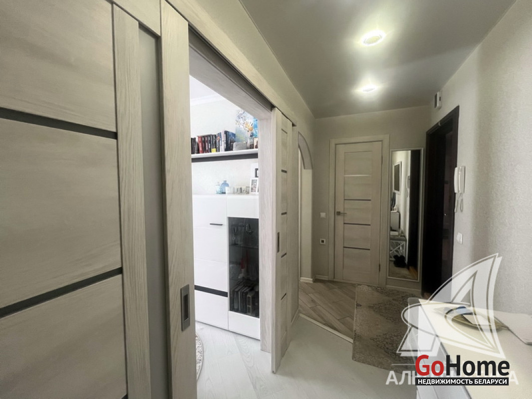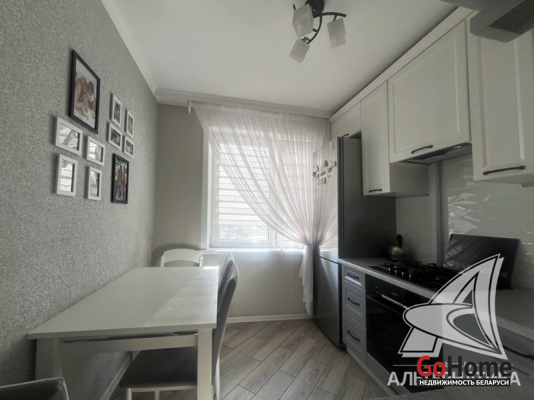 2-комнатная квартира, г. Брест, ул. Октябрьской Революции, 1991 г.п., 6 / 9 панель, 51,3 / 49,5 / 29,5 / 7,3, санузел раздельный, лоджия, стеклопакеты, межкомнатные двери - экошпон, входная дверь металлическая, потолки - снежка с разноплановой системой освещения (2,5 м), полы (положены на стяжку) - ламинат, есть подогрев пола (в кухне, в прихожей), стены оклеены обоями, в санузле современная плитка, заменена сантехника, заменен полотенцесушитель, заменены сантехнические трубы, инсталляция, новый электросчетчик, вывод под кондиционер, домофон. Кухонный гарнитур, варочная поверхность, духовой шкаф, вытяжка, посудомоечная машина, корпусная мебель (в прихожей, в зале, в спальне), элементы декора. Квартира с хорошим ремонтом. Все окна выходят во двор. Чистый подъезд. Капитальный ремонт дома 2024 г. Во дворе парковка для автомобилей. Лот - 260310