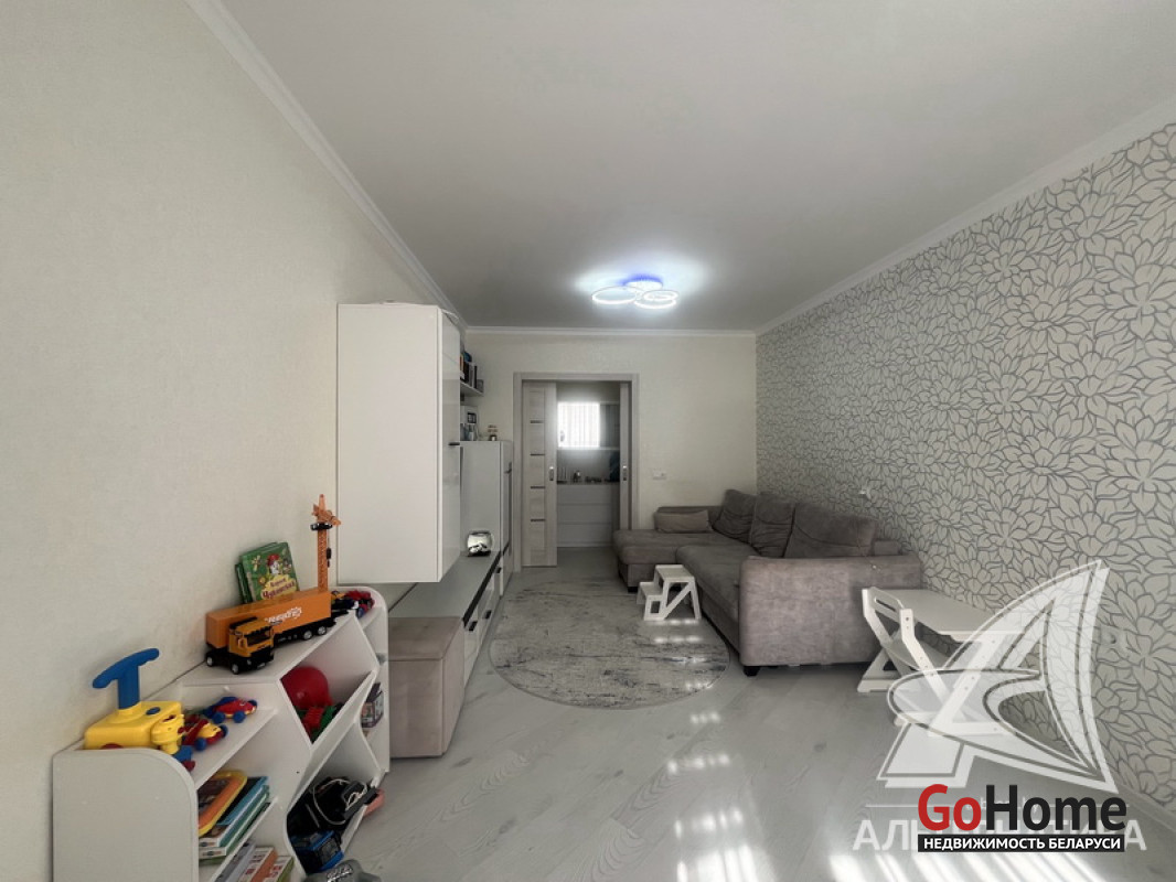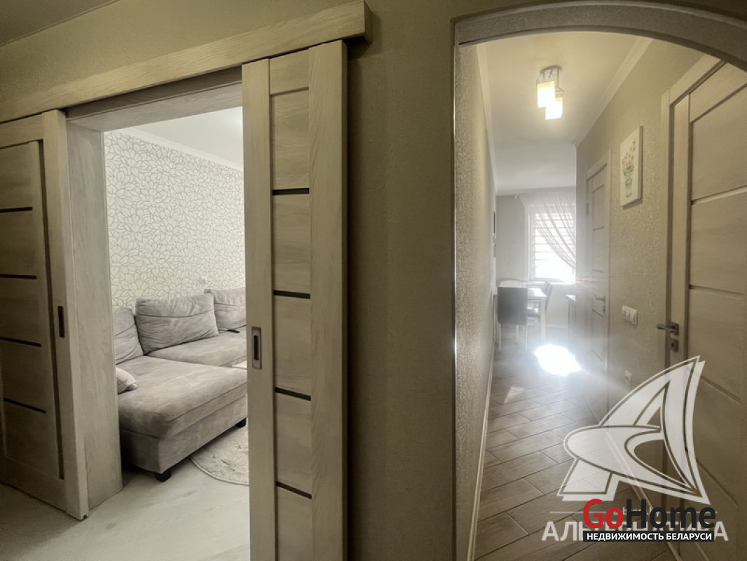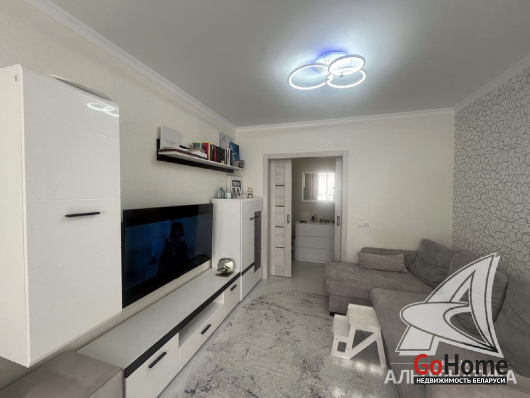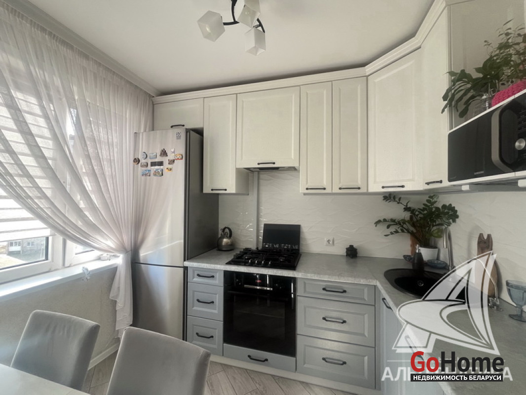 2-комнатная квартира, г. Брест, ул. Октябрьской Революции, 1991 г.п., 6 / 9 панель, 51,3 / 49,5 / 29,5 / 7,3, санузел раздельный, лоджия, стеклопакеты, межкомнатные двери - экошпон, входная дверь металлическая, потолки - снежка с разноплановой системой освещения (2,5 м), полы (положены на стяжку) - ламинат, есть подогрев пола (в кухне, в прихожей), стены оклеены обоями, в санузле современная плитка, заменена сантехника, заменен полотенцесушитель, заменены сантехнические трубы, инсталляция, новый электросчетчик, вывод под кондиционер, домофон. Кухонный гарнитур, варочная поверхность, духовой шкаф, вытяжка, посудомоечная машина, корпусная мебель (в прихожей, в зале, в спальне), элементы декора. Квартира с хорошим ремонтом. Все окна выходят во двор. Чистый подъезд. Капитальный ремонт дома 2024 г. Во дворе парковка для автомобилей. Лот - 260310