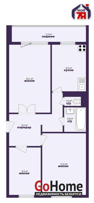 - Лоджия, площадью 3,3 м2 позволит вам наслаждаться свежим воздухом и солнечными днями.