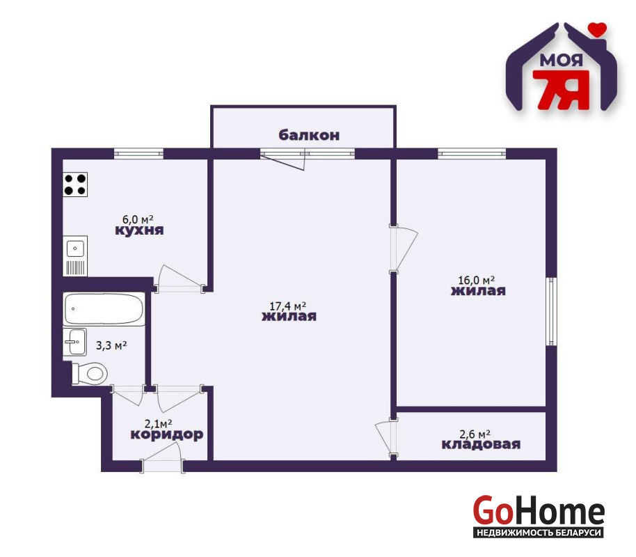 -Планировка продуманная и удобная - высокое соотношение жилой площади к общей и в то же время достаточно места для хранения. При необходимости пространство легко адаптировать под формат евродвушки с просторной жилой зоной‑студией.