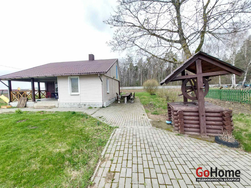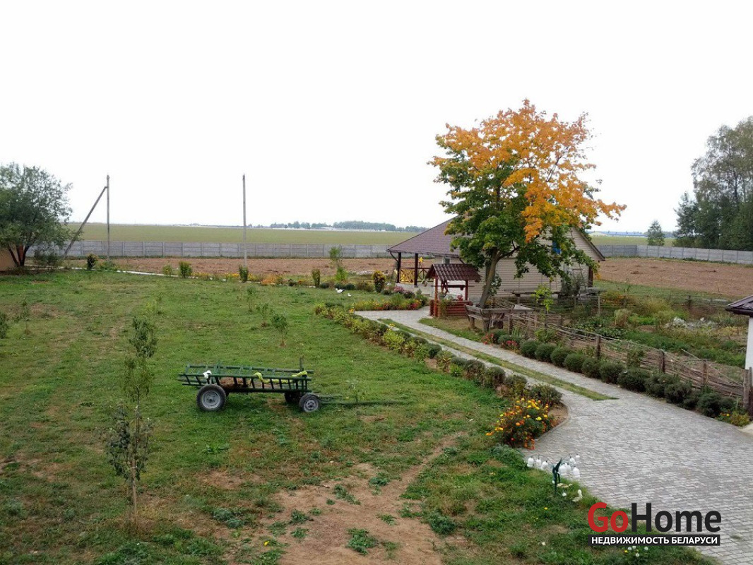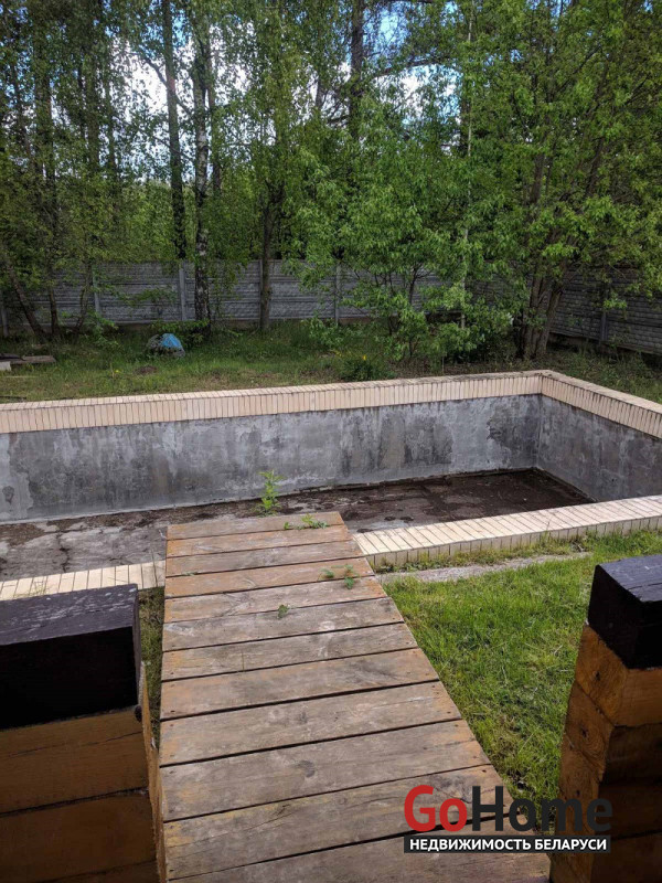 Участок огорожен, площадь - 1 га. На участке расположены: баня (с санузлом и бассейном), беседка, зона барбекю, стоянка для авто, гараж (S=46 м.кв), колодец, бассейн. Земля ухожена. Высажен молодой фруктовый сад, рядом с домом газон с декоративными растениями, цветами. Выделен участок для огорода.