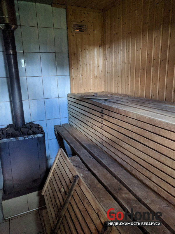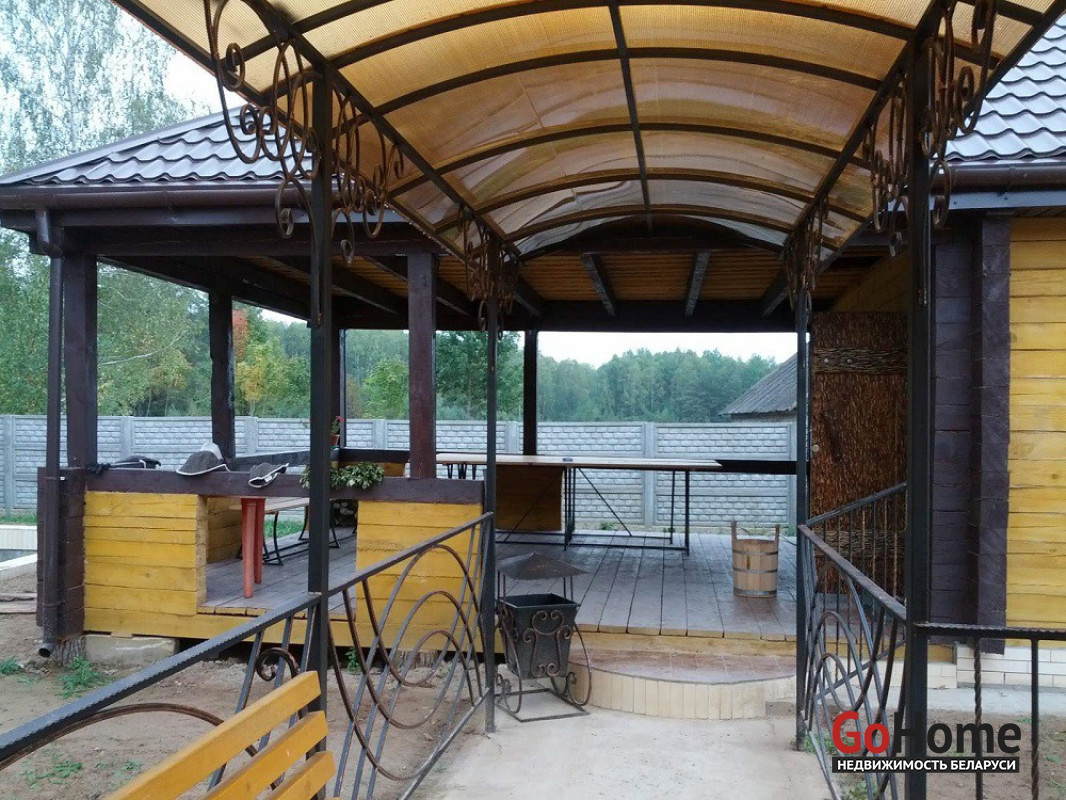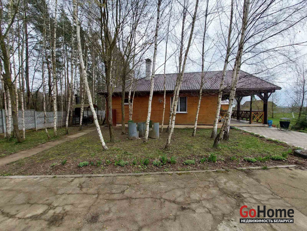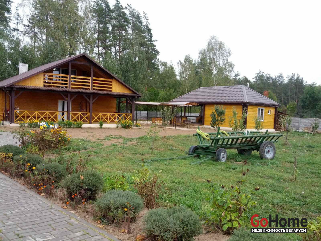Второй дом блочный, отделан деревом, 2015 года постройки, двухэтажный, мансардного типа. Общая площадь здания – 179 м.кв. На первом этаже расположен зал на 150 м.кв для проведения банкетов, любого вида торжеств. Выделена зона отдыха с камином, 3 санузла, помещение с кухонным оборудованием. На полу –плитка. На втором этаже комната на 10 спальных мест, терраса. Вода – скважина, электричество – центральное, канализация – местная. Крыша-металлочерепица с организованным водостоком.