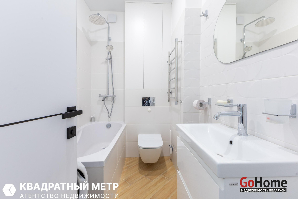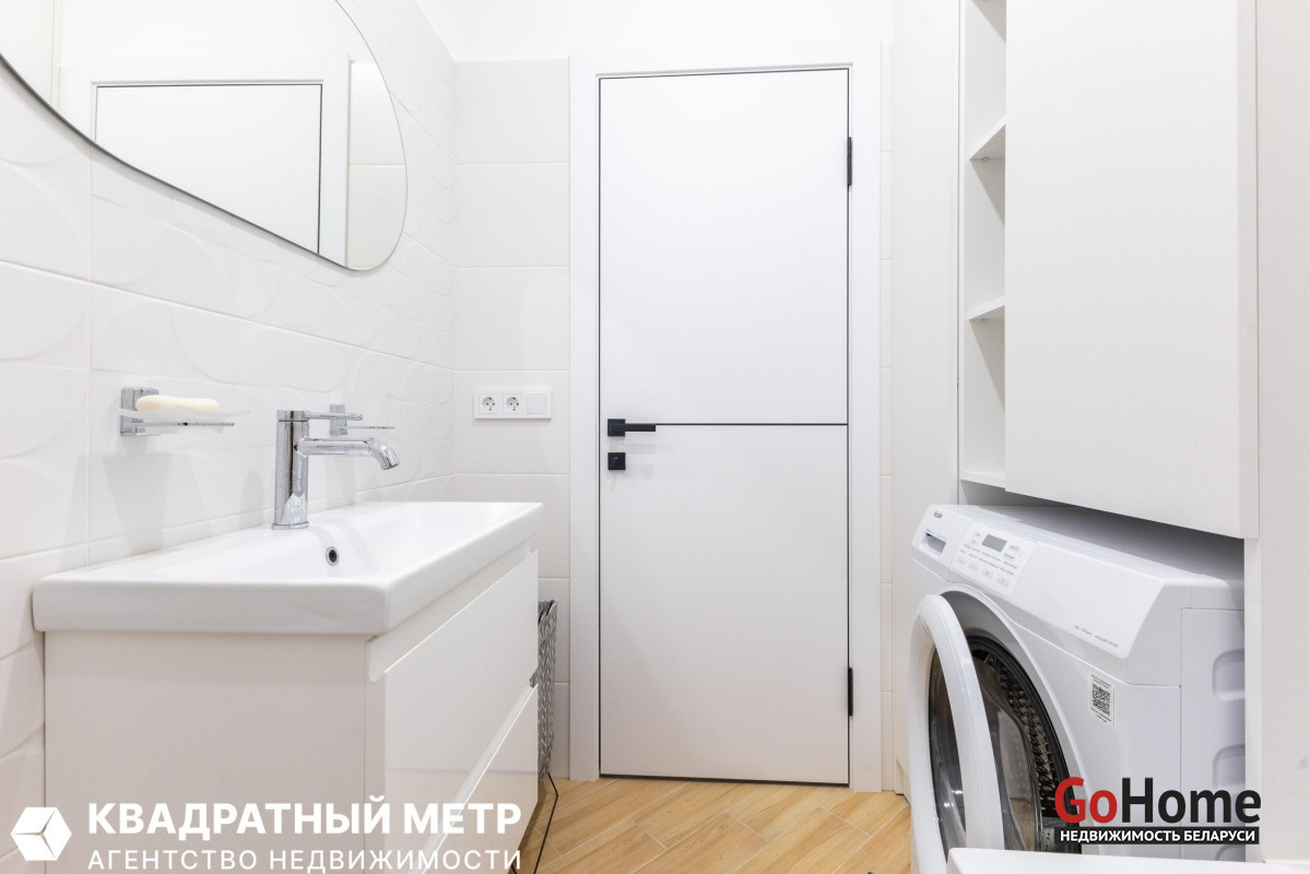 В квартире остается кухня со встроенным холодильником, варочная поверхность, духовой шкаф, вытяжка, вся мебель, стиральная машина, электро - и светоприборы.