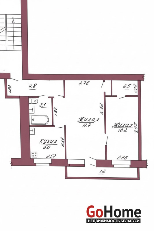 Планировка квартиры: две изолированные комнаты 17,7 и 10,2 м2. Общая площадь – 44,3 м2. Уютная кухня 6,0 м2. Аккуратный подъезд, доброжелательные соседи. Материал полов: керамическая плитка, доска, линолеум.