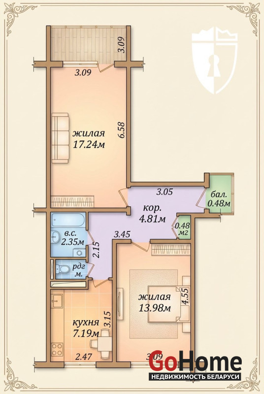 Площадь по СНБ 51 кв.м. Комнаты 17,9 и 13.9 кв.м. Стеклопакеты на кухне и в комнате, лоджия большая застеклена.