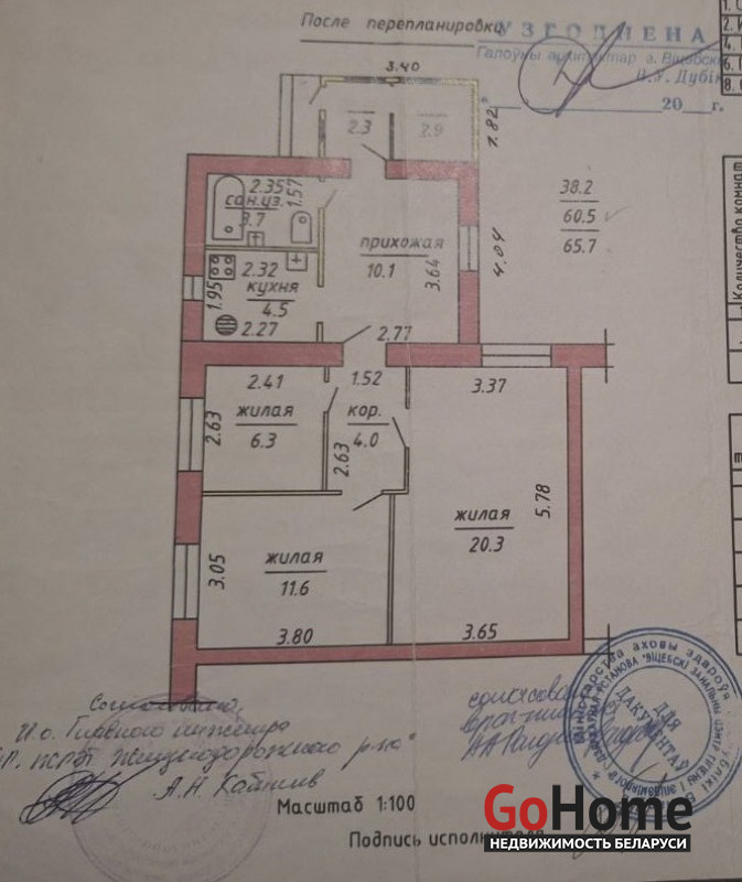 Общая площадь: 66 кв.м, кухня 5 кв.м.