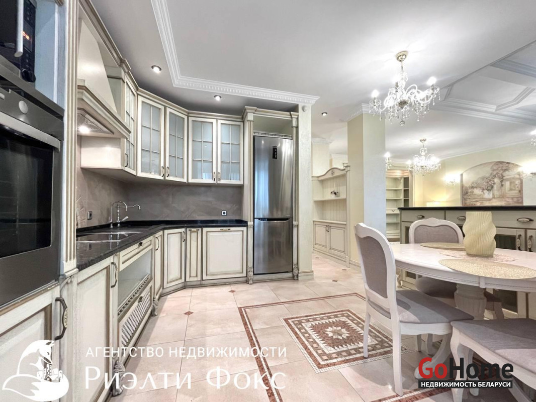 Квартира оснащена всей необходимой бытовой техникой, в том числе кофемашиной, системой очистки питьевой воды, посудомоечной машиной, кондиционером, стиральная машина, холодильник, духовой шкаф, СВЧ, вытяжка, кухонный остров.